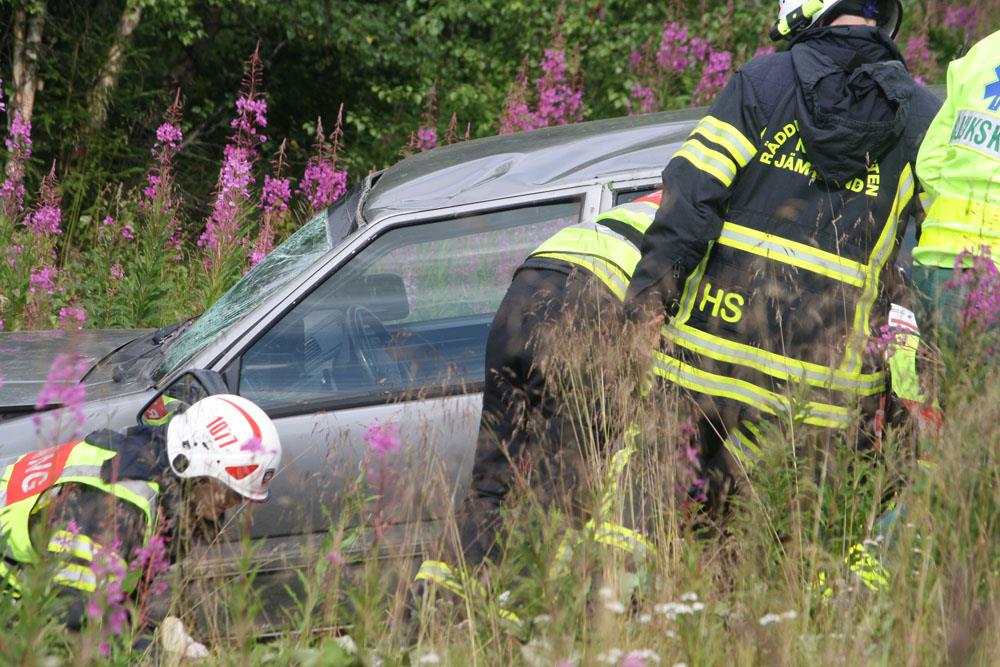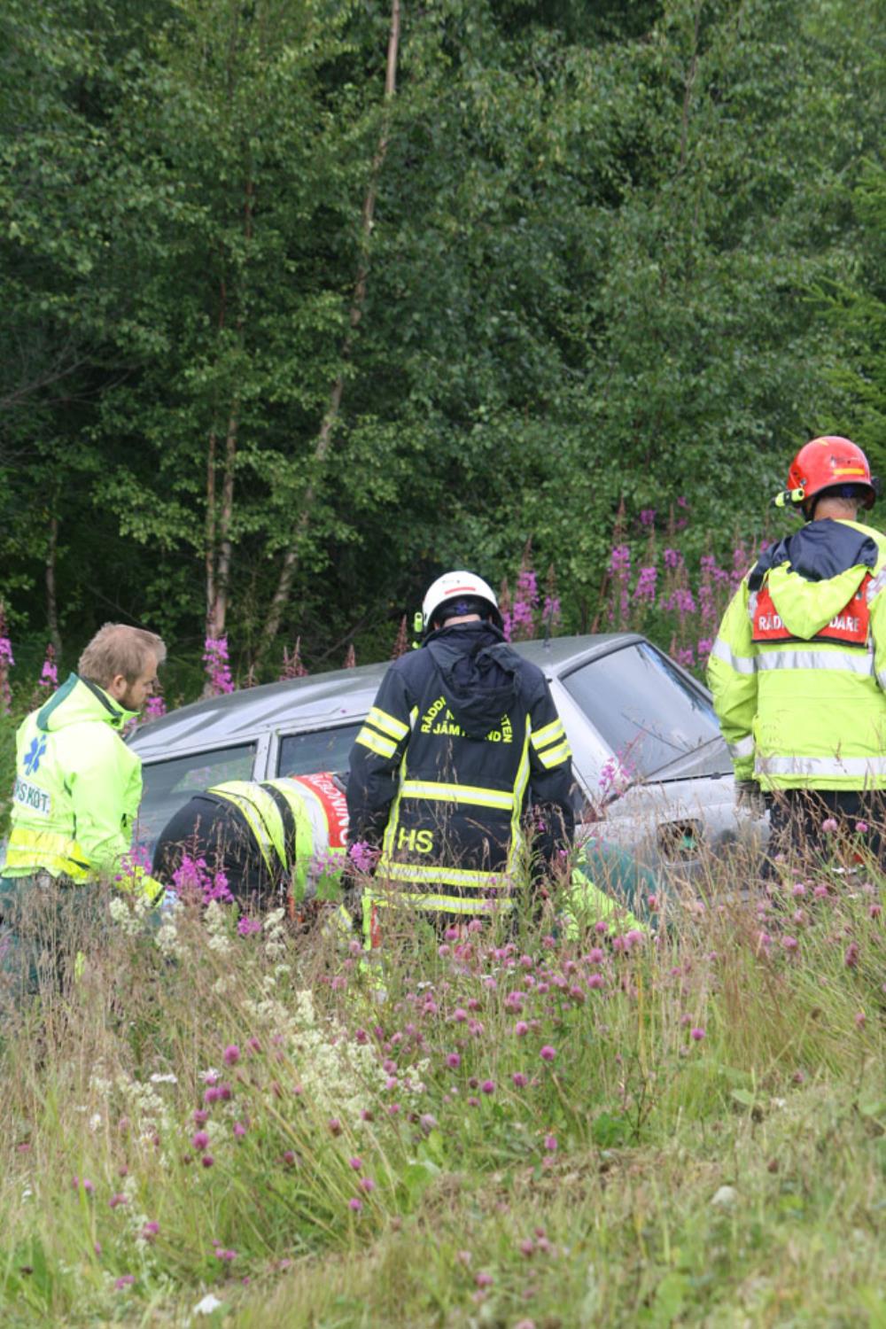 En person befann sig utanför bilen när räddningstjänst, polis och ambulans anlände till platsen.
