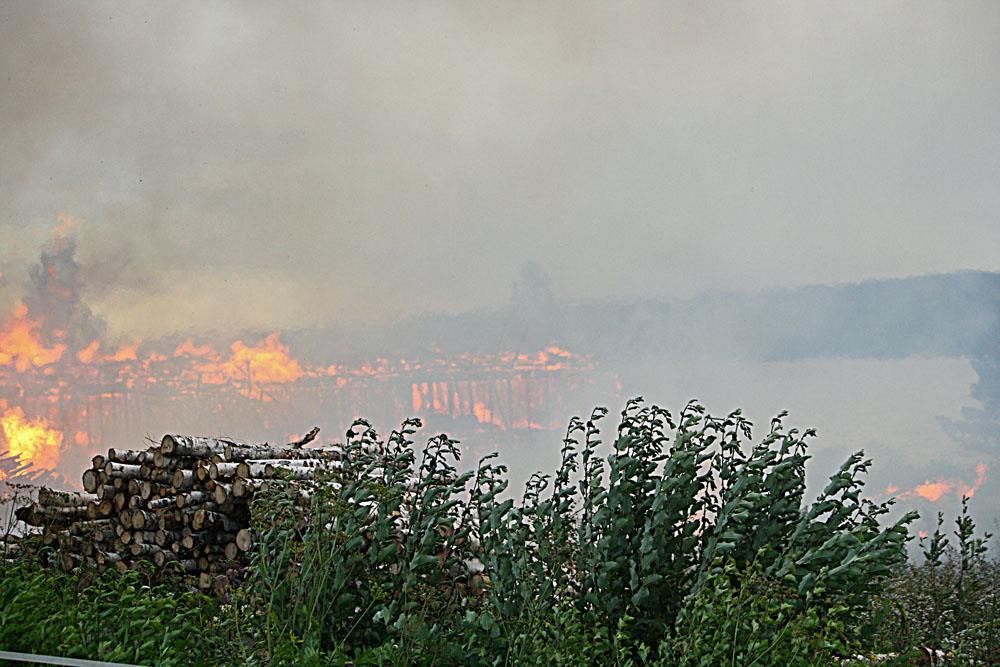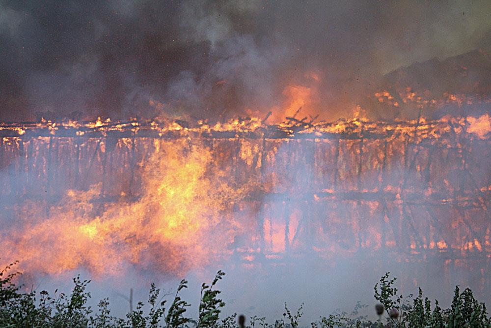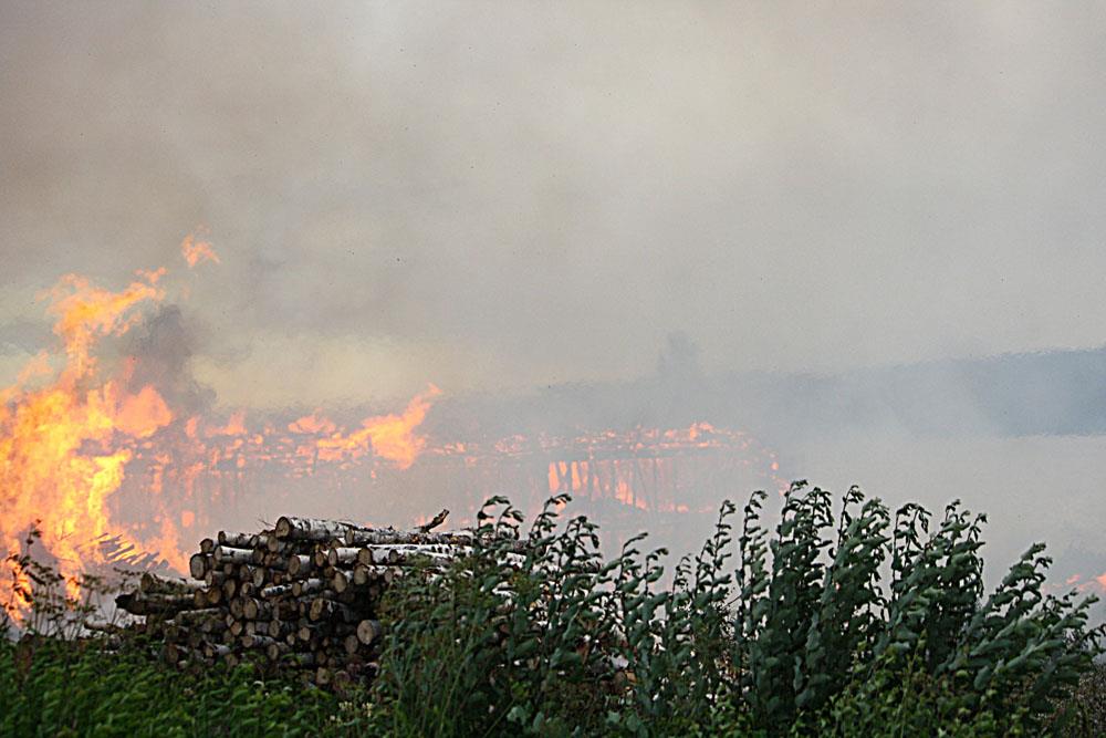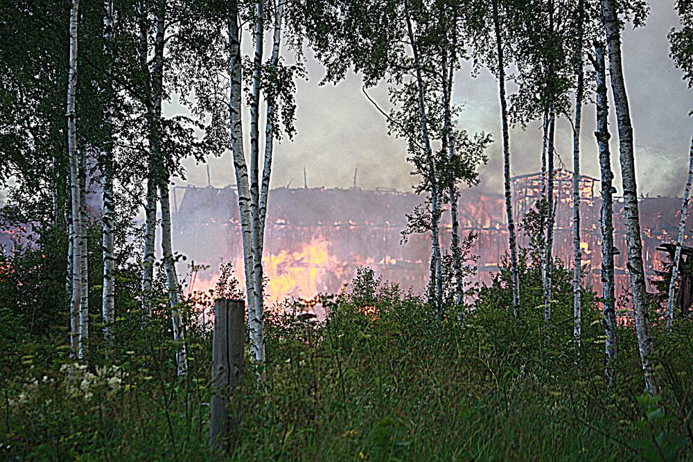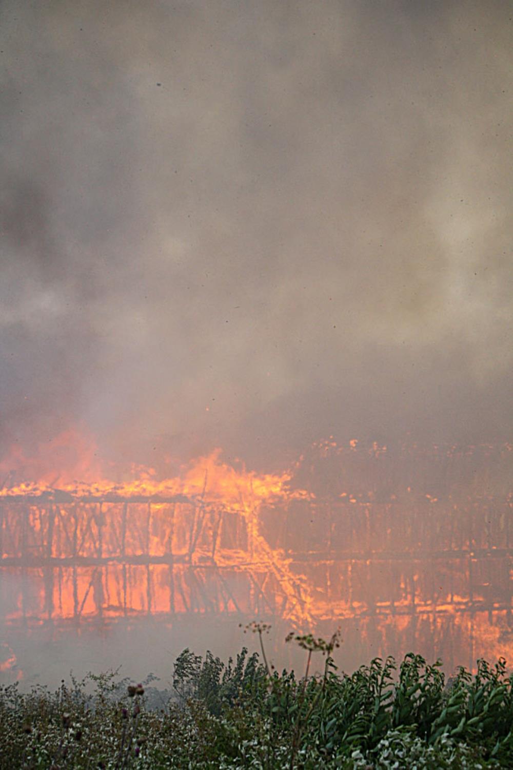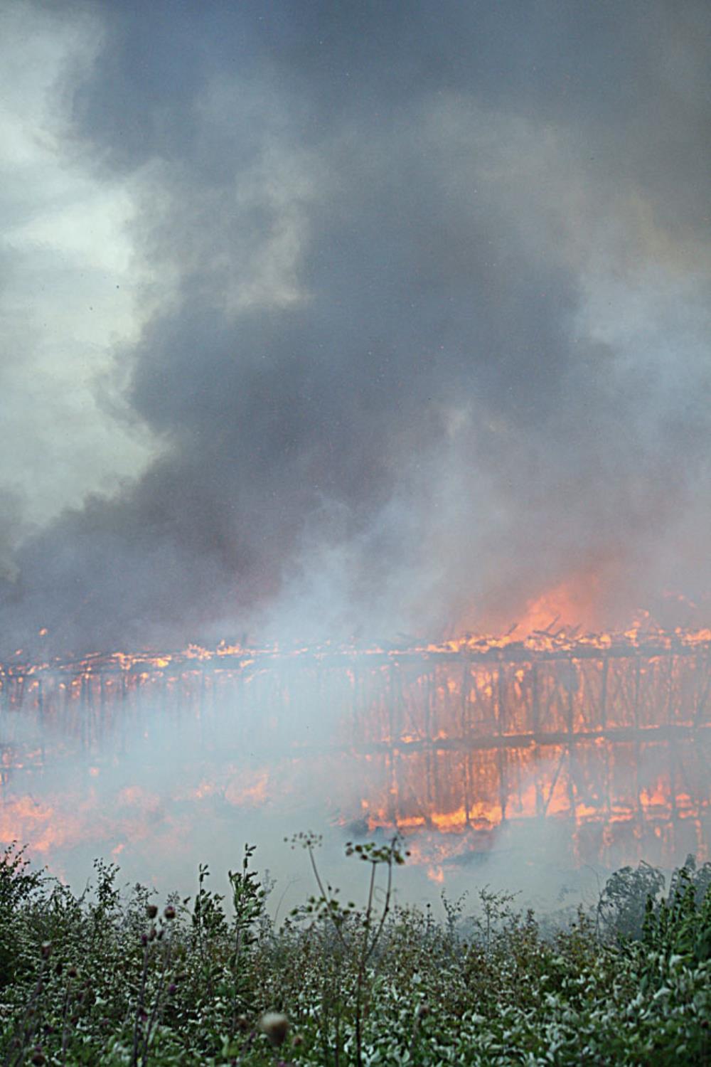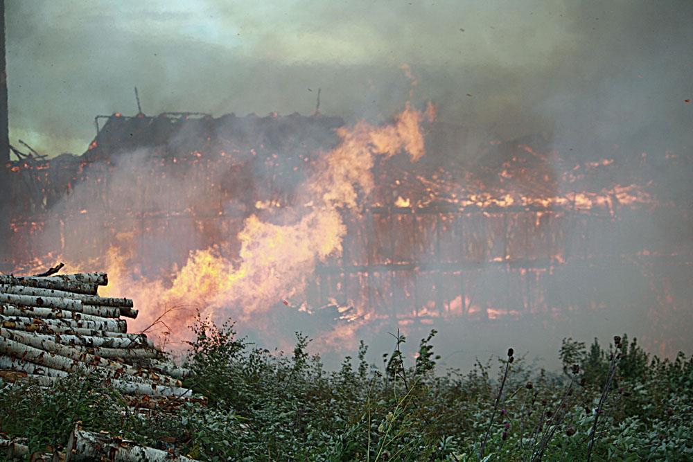När räddningstjänsten anlände var den 70 meter långa byggnaden redan övertänd. Värmen från branden var så intensiv att byggnader som låg några hundra meter bort fattade eld.