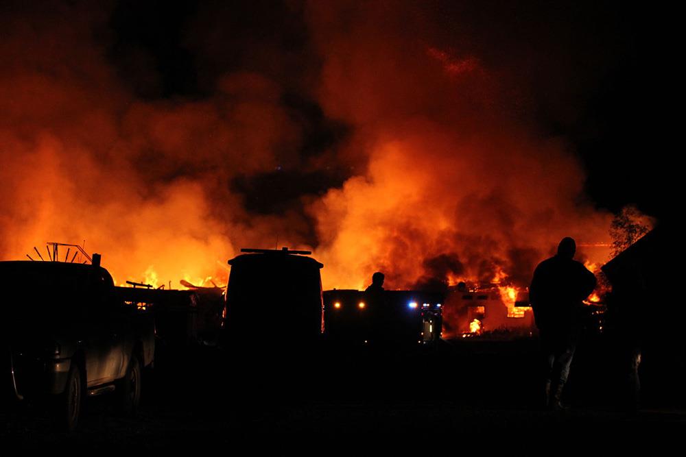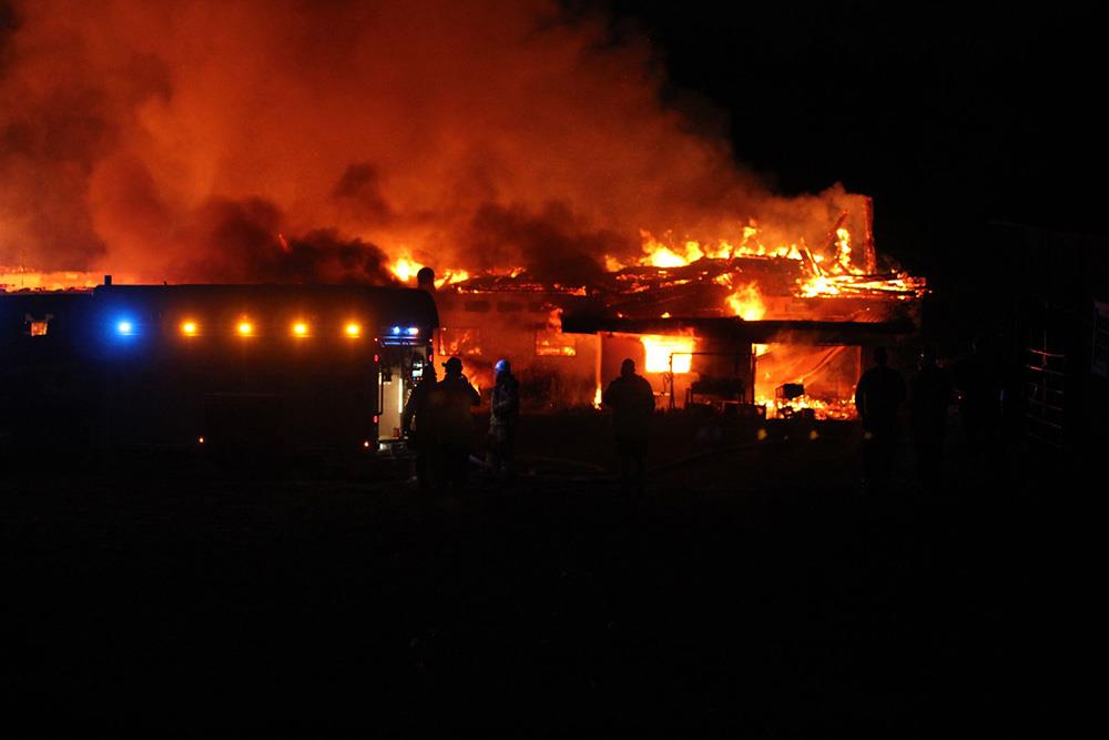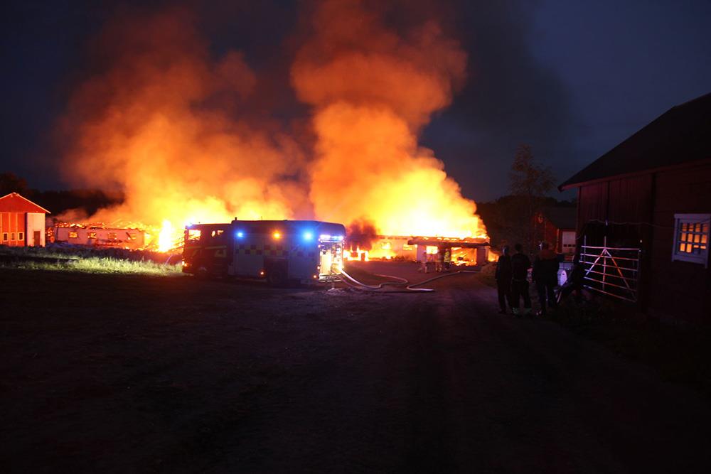 Branden bröt ut av okänd anledning på onsdagsnatten och ladugården är totalt utbränd.