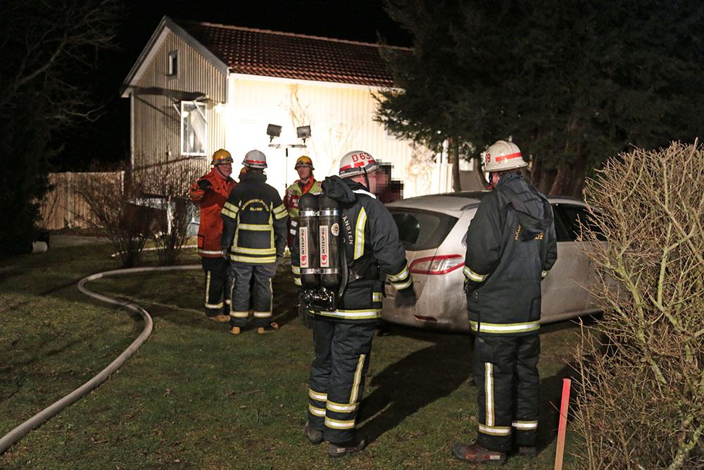 De boende i huset hade vaknat av att brandvarnaren börjat tjuta. Det visade sig att det var en avfuktare som börjat brinna i källaren.