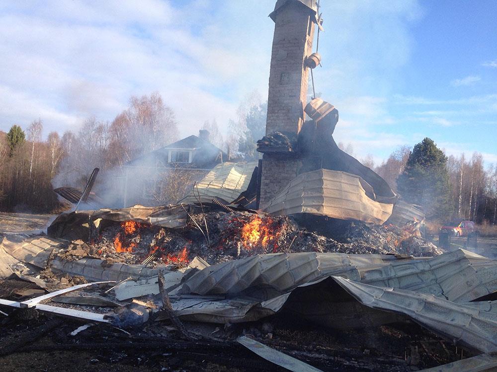 När räddningstjänsten kom fram så brann det på övervåningen och snart var hela villan övertänd.Samtliga personer som fanns i villan ska ha tagit sig ut.