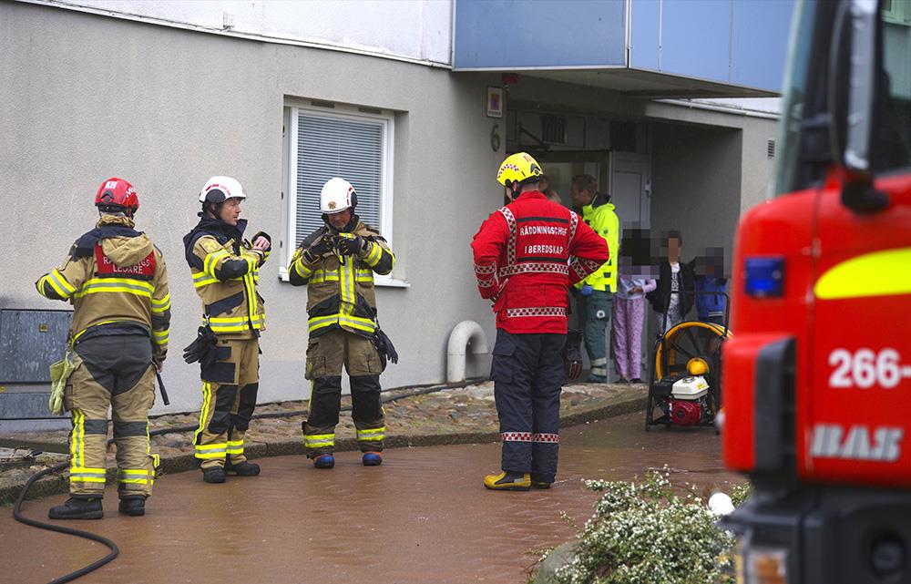 Knappt var arbetet med den olyckan färdigt innan det kom ett nytt larm om brand i byggnad på gullaberg nästan mitt emot olyckan.