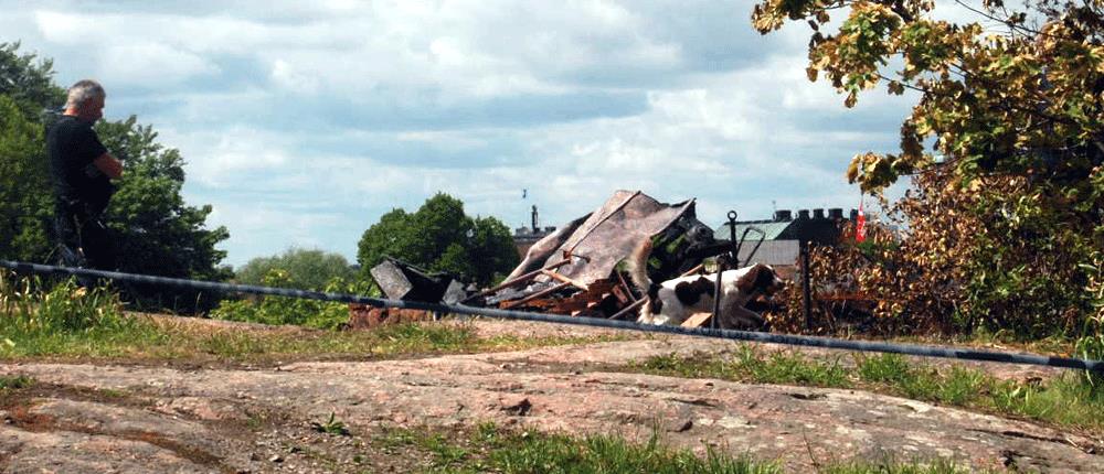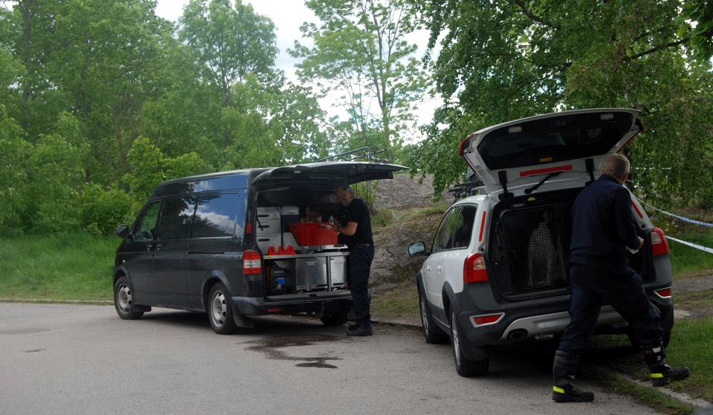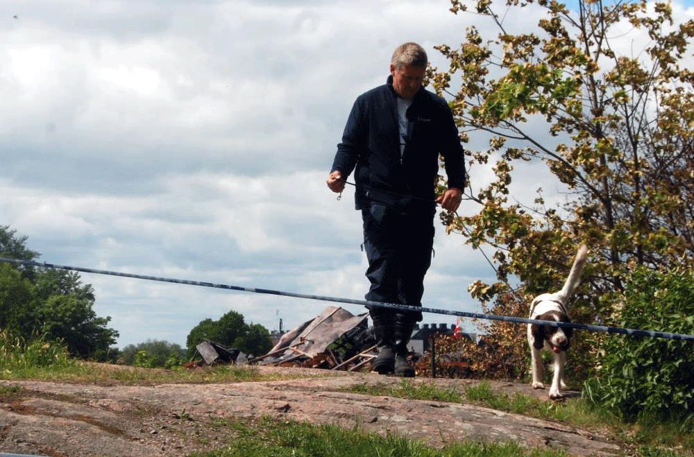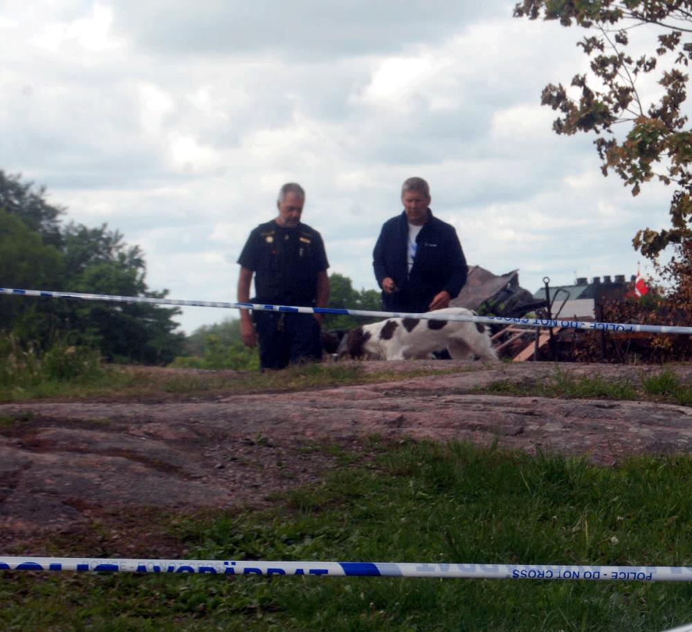Under måndagen undersöktes platsen bland annat av speciella brandhundar som sökte efter spår av brandfarliga vätskor.