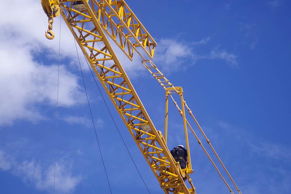 KARLSKRONA-BLEKINGENågonting gick snett på onsdagseftermiddagen när en byggnadsarbetare fastnade uppe i en byggkran på Pottholmen i Karlskrona.