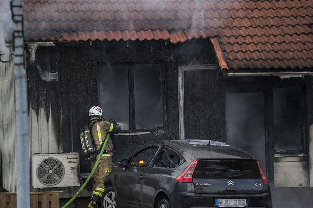 Larmet kom in till SOS klockan 13.44. Det är oklart om någon person finns kvar i huset. Det är stor spridningsrisk då det är flera hus som sitter i en länga.