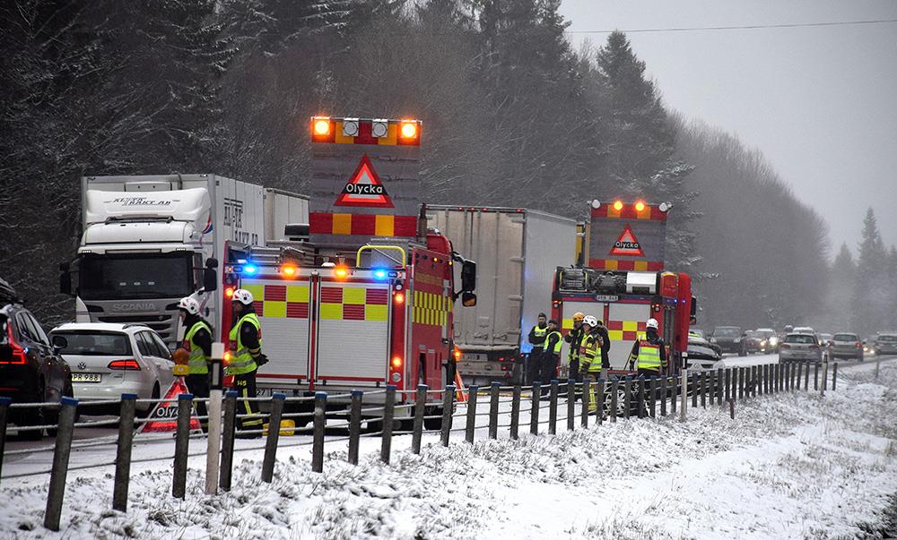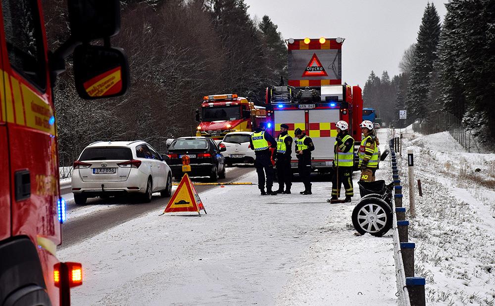 SKARA-VÄSTRA GÖTALANDVid klockan 06:35 på onsdagsmorgonen larmades räddningstjänst, ambulans och polis till en trafikolycka mellan två personbilar på riksväg 49 i höjd med Storekullen mellan Skara och Skövde.