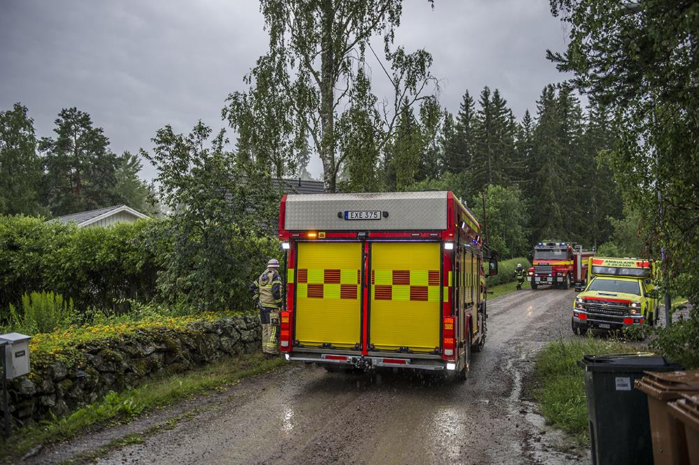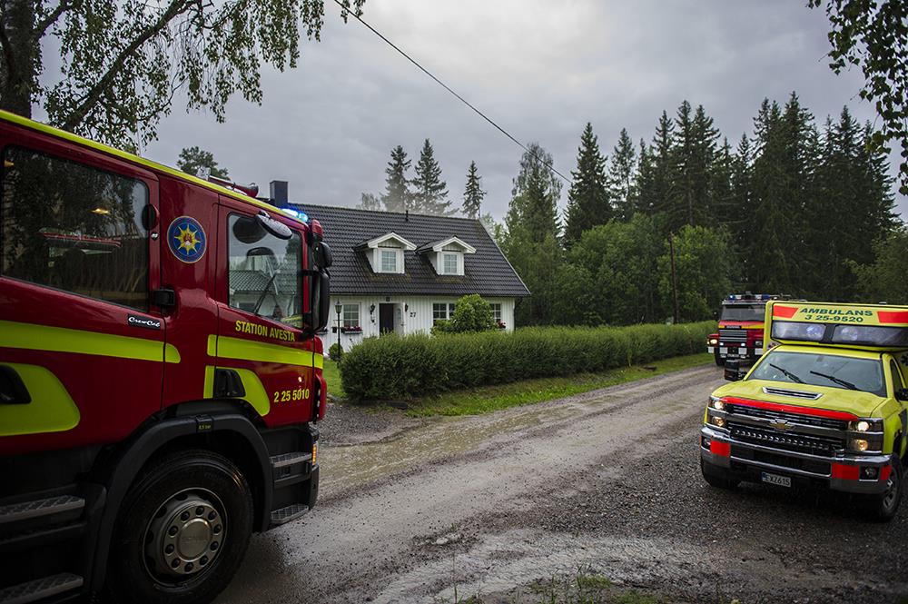 Enligt uppgifter branden ha orsakat åska Även fönsterrutor har förstörts i samband med åsknedslaget. Räddningstjänst ifrån Hotndal och Svesta arbetade på platsen samt polis och ambulans.