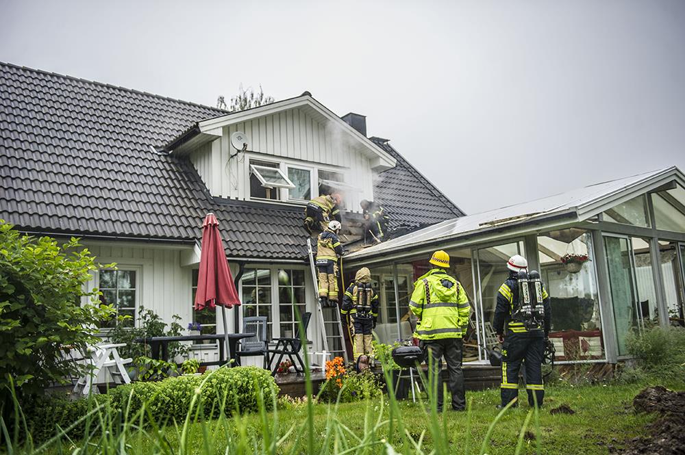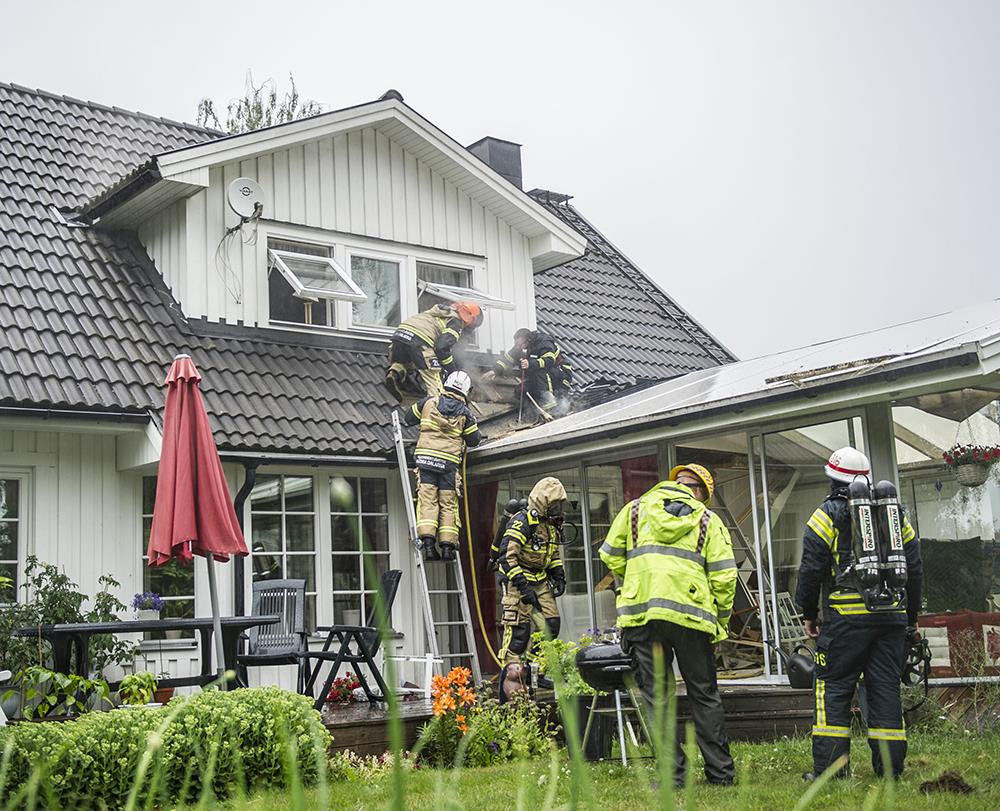Enligt SOS Alarm skall en brand börjat i ett uterum.
