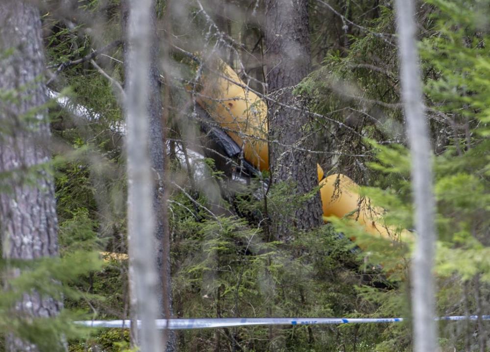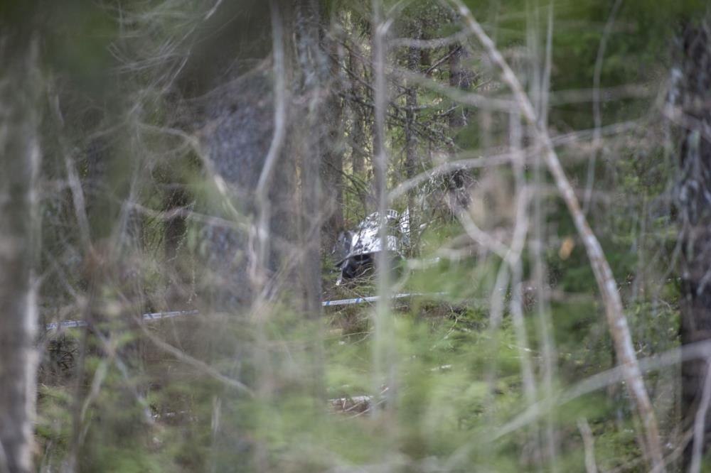 Räddningstjänsten gick först upp med en drönare och kunde på så sätt lokalisera helikoptern som gått ner mellan träden.