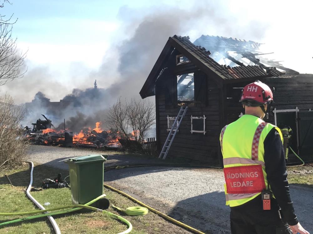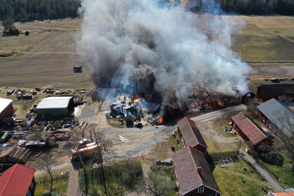ENKÖPING-UPPSALAEn gräsbrand i Utmyrby har lett till att flera byggnader brann ner under fredagen.