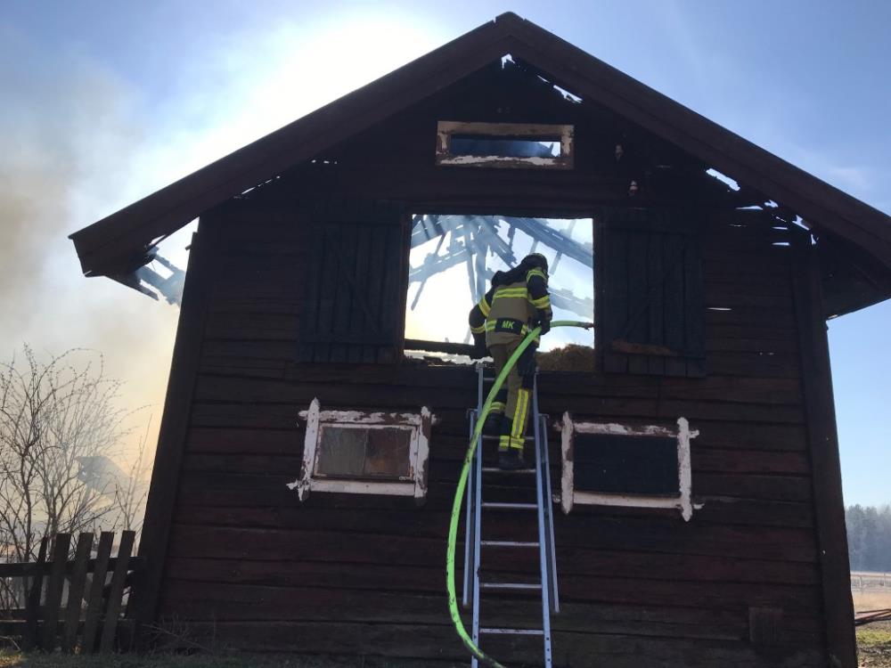 Gräsbranden spred sig till lador i närheten varav en var helt nedbrunnen en timme senare.