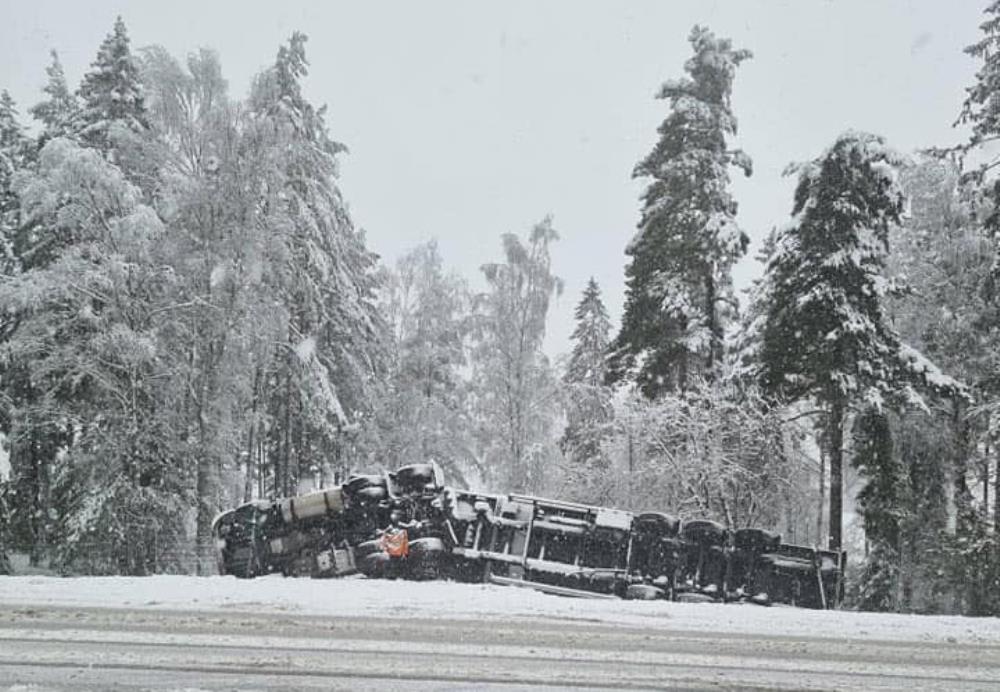 GULLSPÅNG-VÄSTRA GÖTALANDEn lastbil har kört i diket på riksväg 26 mellan Gullspång och Kristinehamn.