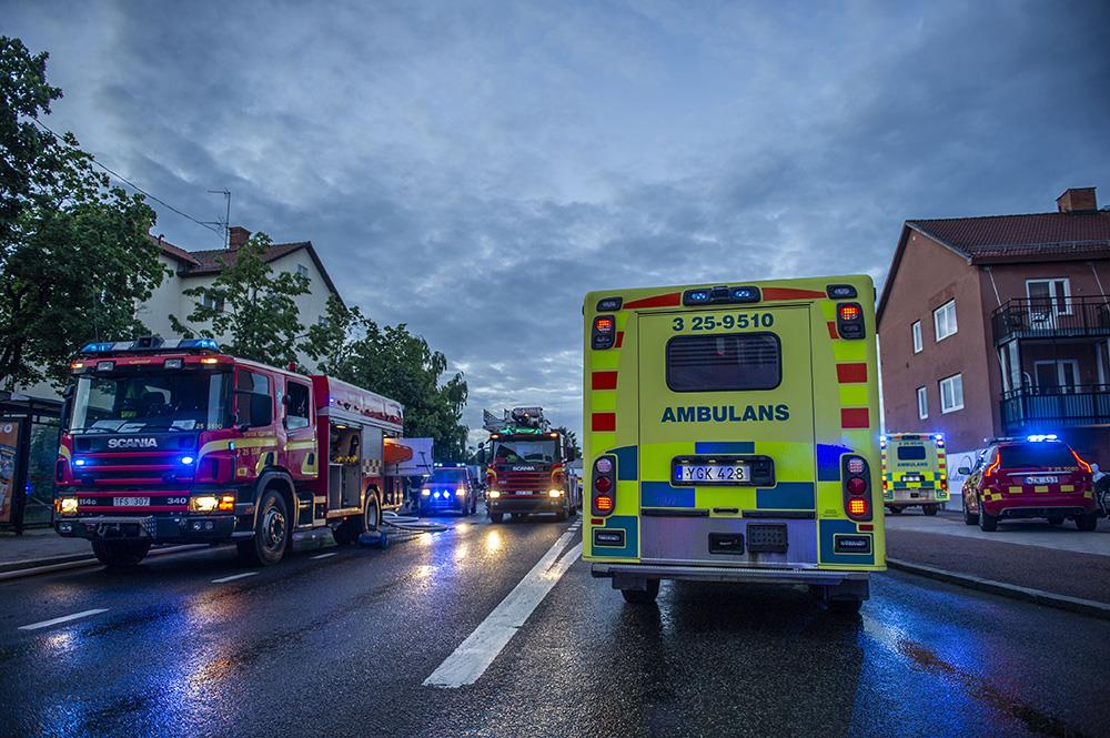 Styrkor från tre olika räddningstjänster ryckte ut till branden, liksom två ambulanser och polis.
