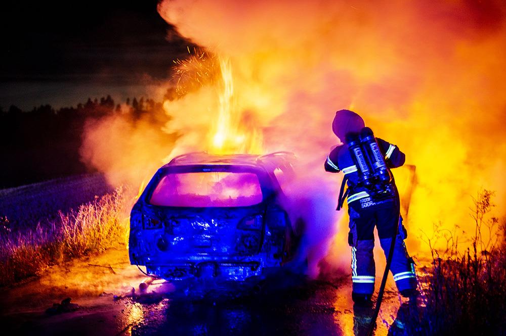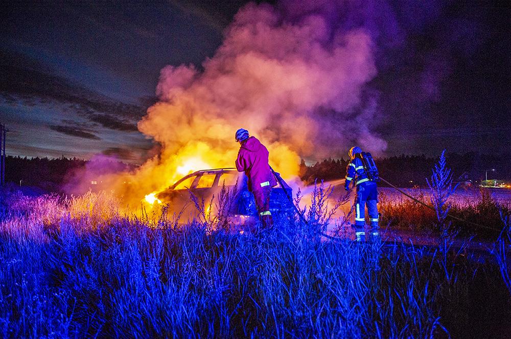 När räddningstjänsten kom till platsen var bilen helt övertänd.