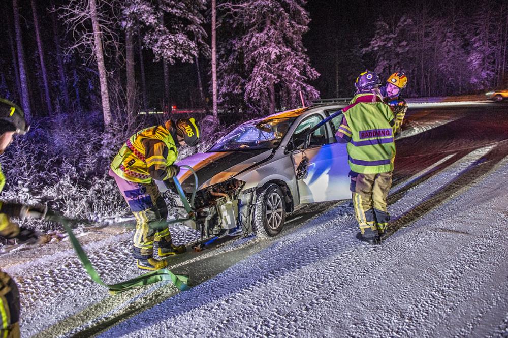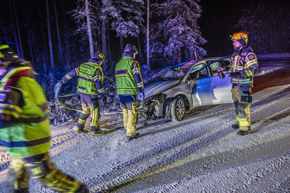 Räddningstjänsten larmades till platsen 20.25 och trafiken stängdes av i samband med bärgning.