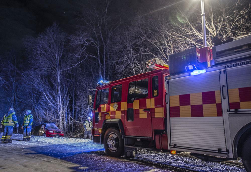 En bil körde av vägen och in i ett träd. Räddningstjänst, polis och ambulans skickades till olycksplatsen.