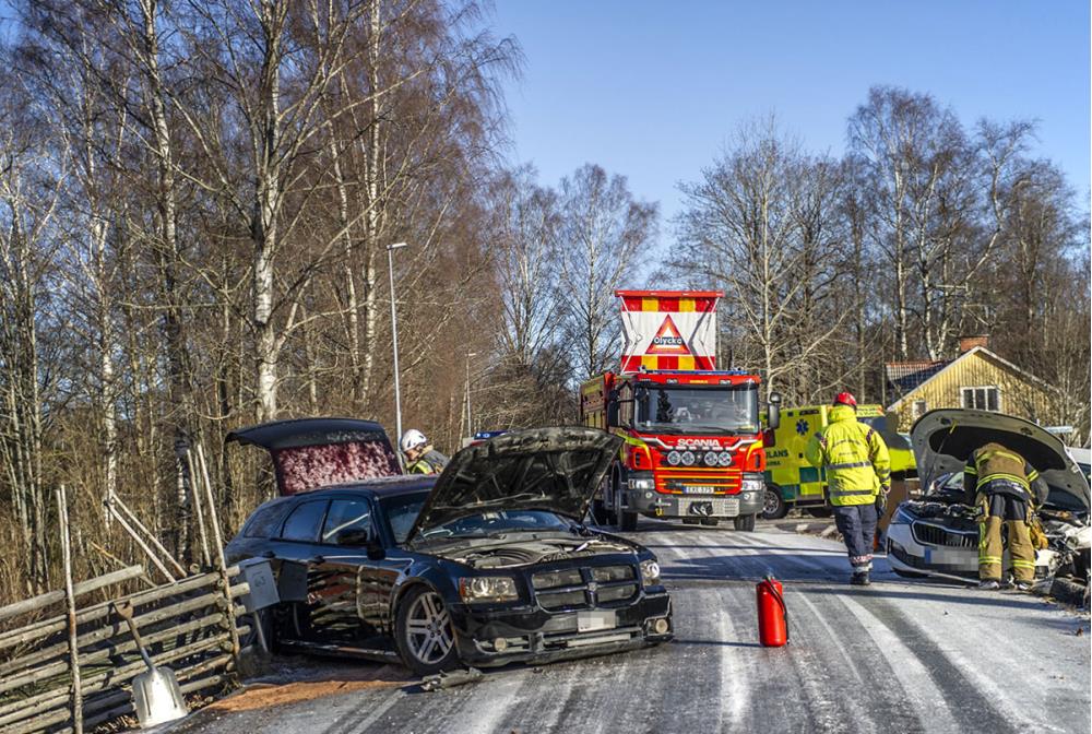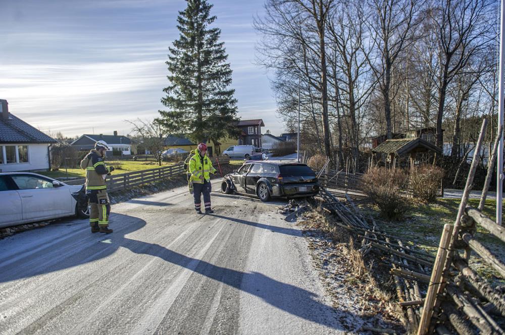 I samband med olyckan körde en av personbilarna in i ett staket till en fastighet. Enligt uppgifter var det mycket halt på olycksplatsen.