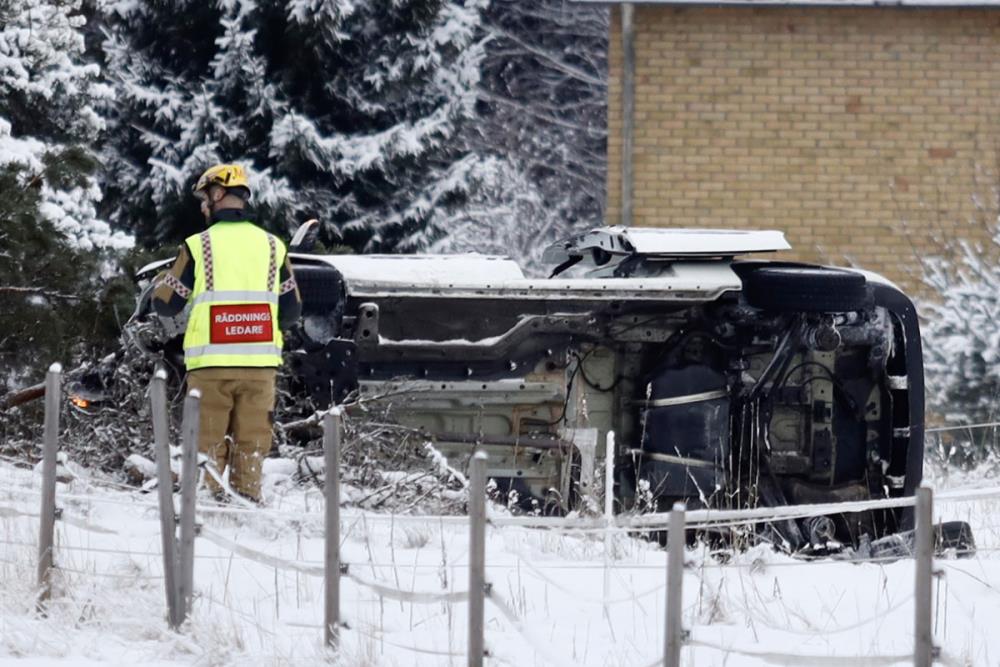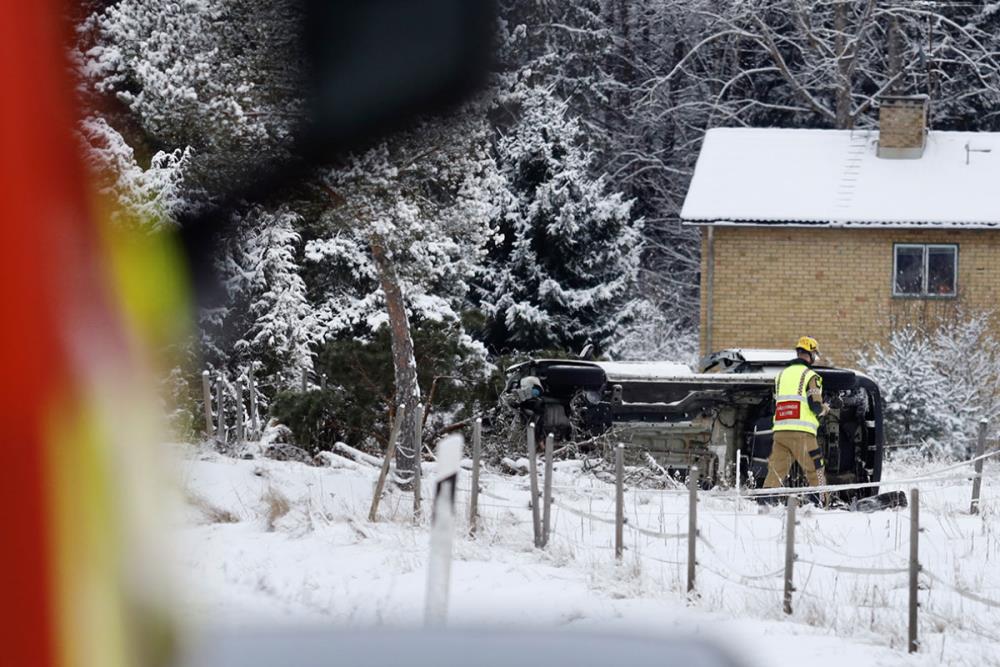 En förare skall av okänd anledning ha voltat. Räddningstjänst, polis och ambulans skickade till platsen.
