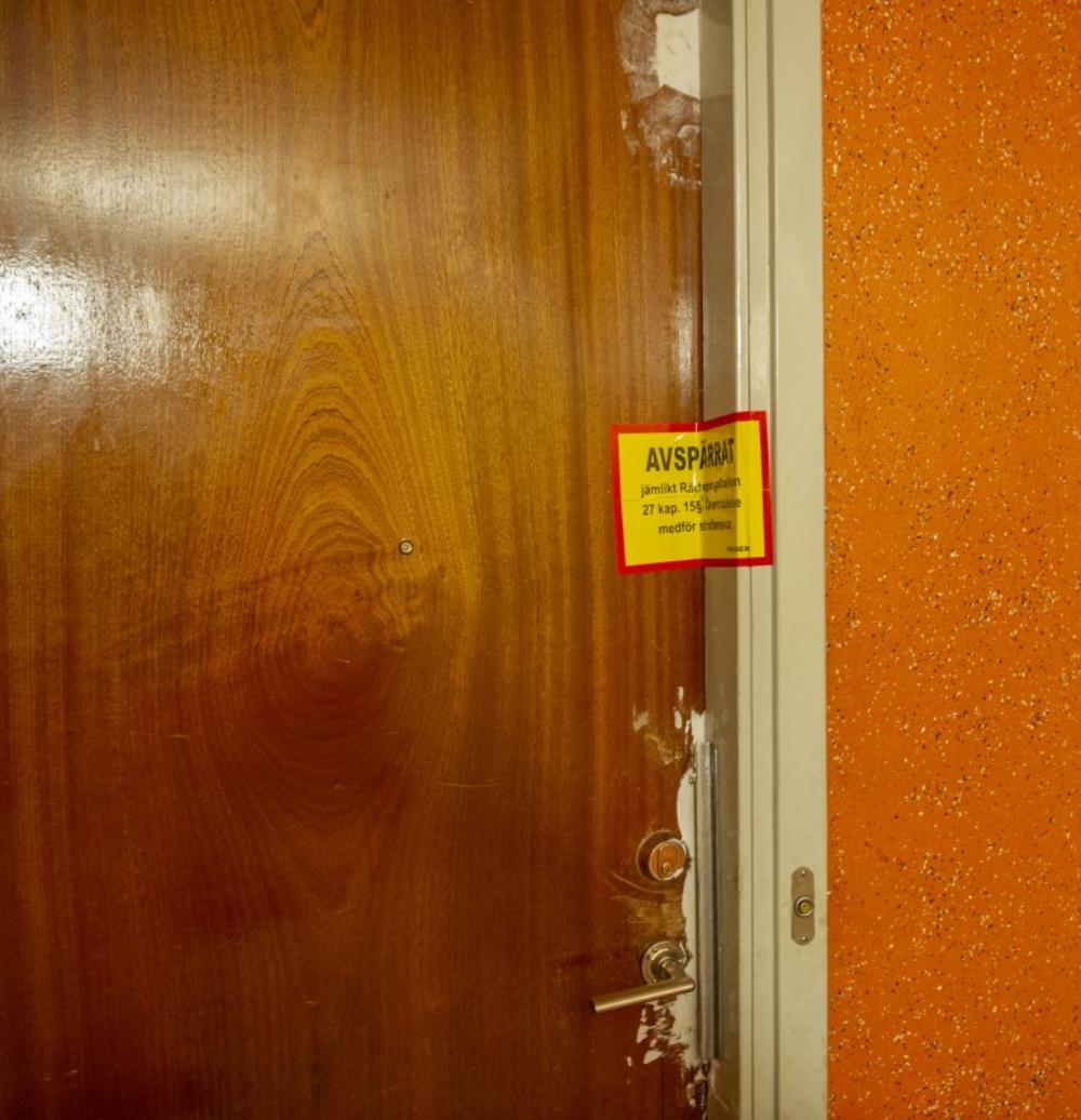 Bostaden spärrades av för teknisk undersökning. Enligt vittnesuppgifter till SVT fanns det mycket blod i trapphuset i närheten av lägenheten, vars dörr hade brutits upp.