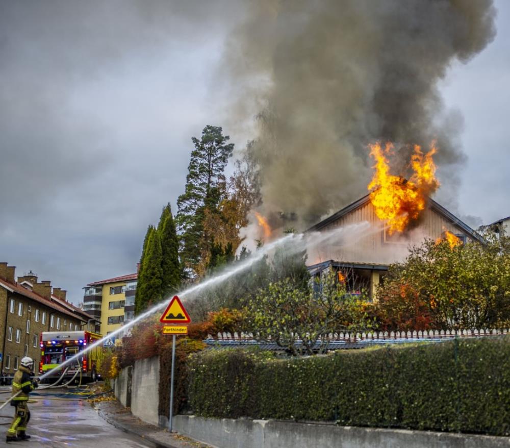 Det kommer inte gå att rädda villan – räddningstjänsten kommer låta den brinna ner helt till grunden.Sex personer skall enligt uppgifter tagit sig ut ur villan.