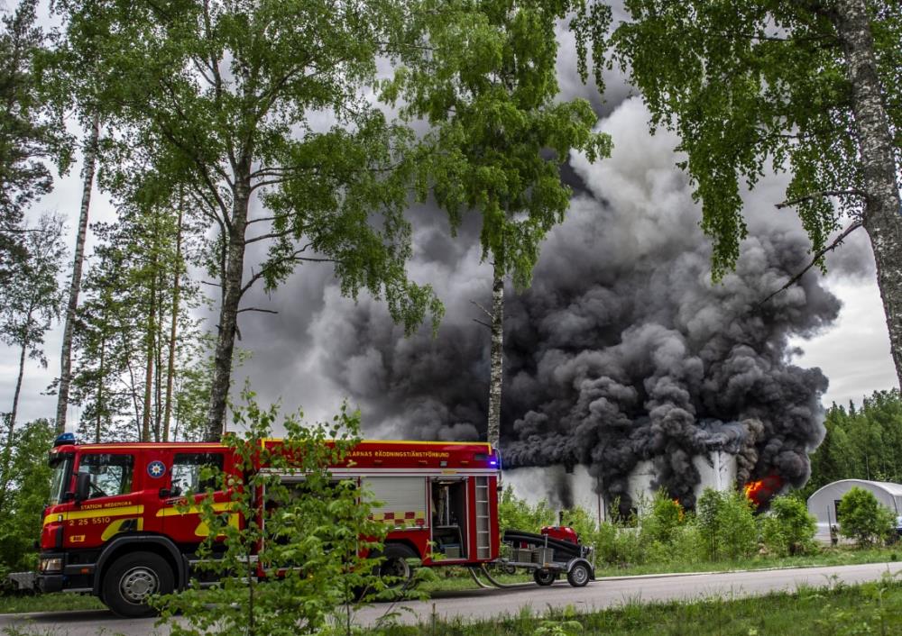 Branden startade runt kl. 07 på fredagsmorgonen i en industrilokal i Västerby, Hedemora kommun. Räddningstjänsten rapporterade om explosioner och förekomsten av gasflaskor i byggnaden.