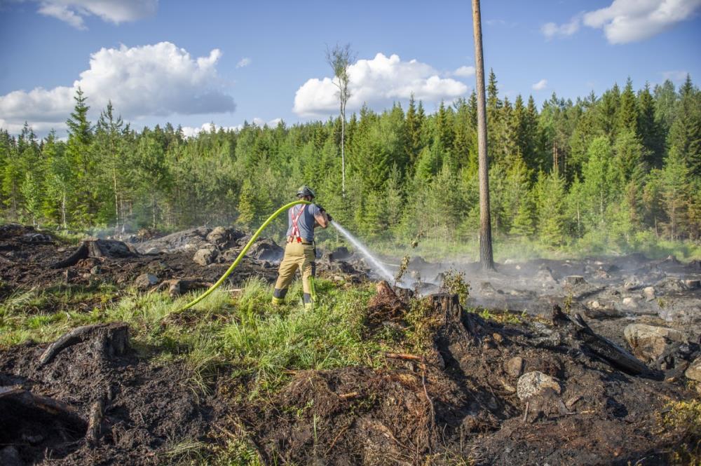 Det var vid 15.30-tiden på södagen som SOS alarm fick in ett samtal från en paddlare på Ljömsebosjön väster om Sala som sett rök komma ut ur skogen.