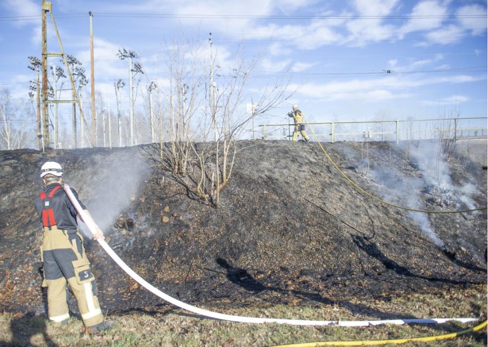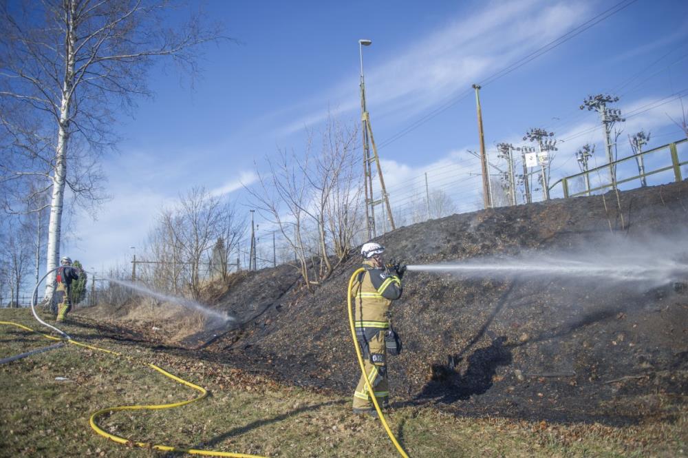 Brandhärden, som var belägen nära Järnvägsgatan och Banvallen vid Krylbo Tågstation, spred snabbt sig i det torra gräset.