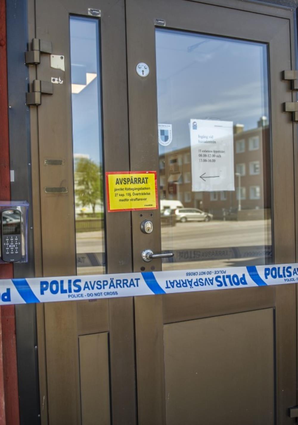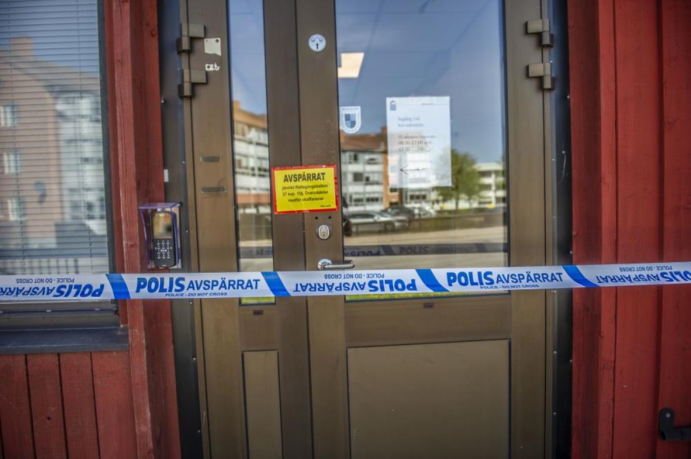 Polisen genomförde sökinsatser i området, men inga misstänkta personer anträffades. Fastigheten spärrades av för en kriminalteknisk undersökning.