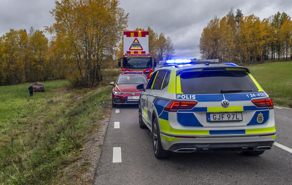 En trafikolycka inträffade på länsväg 256 i Örbäck, Norbergs kommun, då en taxibil körde av vägen och hamnade ute på en åker.