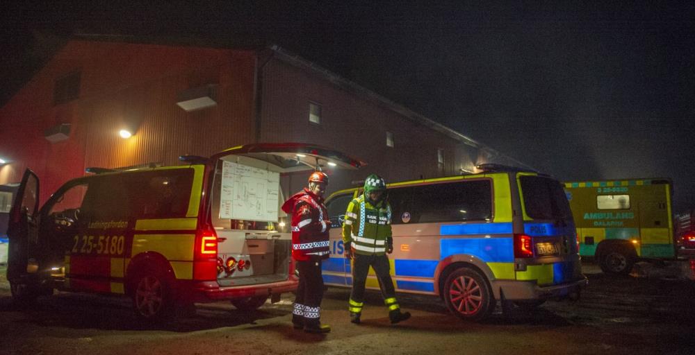 Tre ambulanser skickades till platsen enligt SOS Alarm, men inga personskador rapporteras. Det finns heller inga bostäder i direkt anslutning till området.