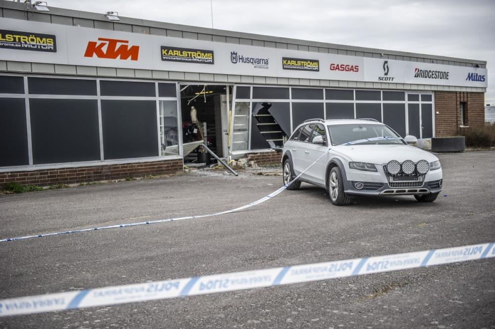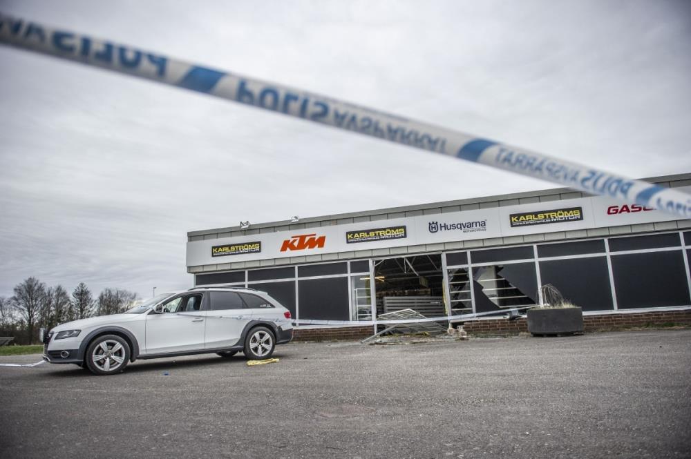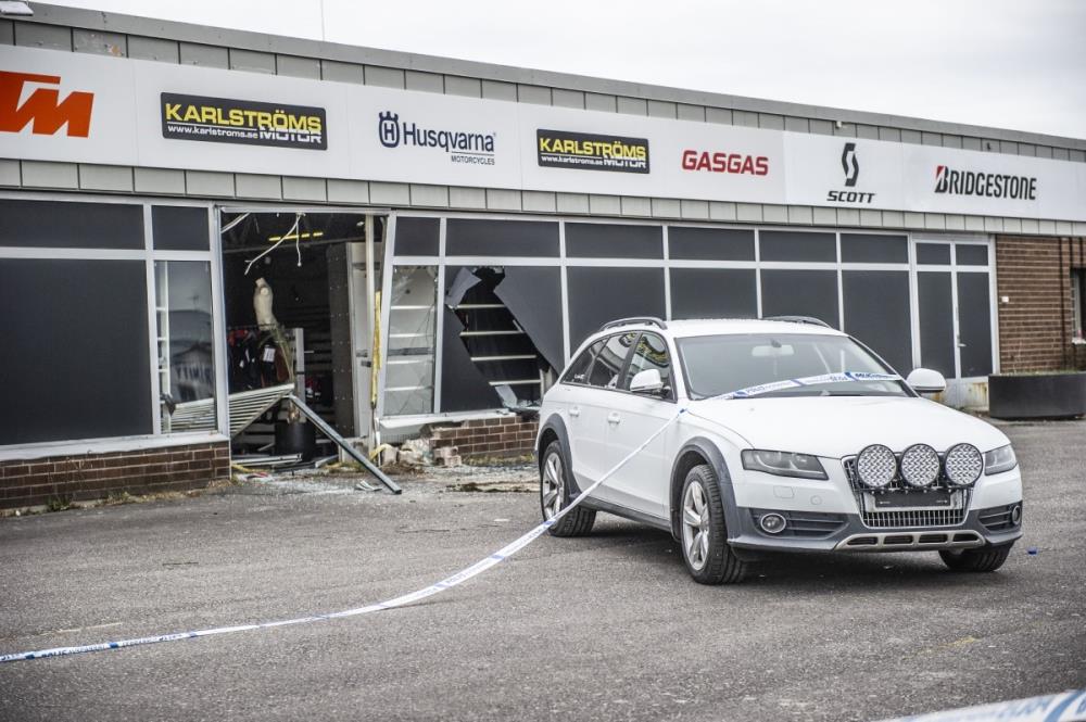 Natten mot fredag utsattes ett företag som säljer motocrosscyklar för ett omfattande inbrott. Ett okänt antal gärningsmän genomförde en så kallad smash and grab, där de tog sig in genom att köra ett misstänkt stulet fordon rakt genom byggnadens fasad.