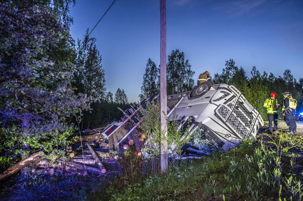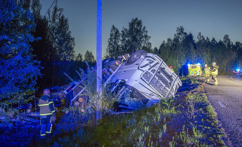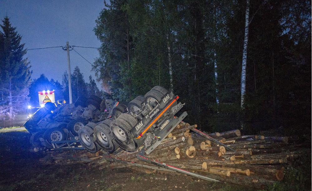 Enligt uppgifter ska chauffören ha väjt för en älg som plötsligt dök upp på vägen. I samband med olyckan förlorade chauffören kontrollen över fordonet, vilket ledde till att timmerbilen hamnade utanför vägen.