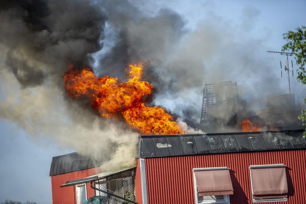 Elden hade börjat i en av lägenheterna och spred sig sedan via taket till övriga delar av huset.