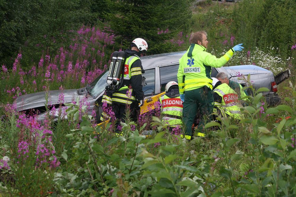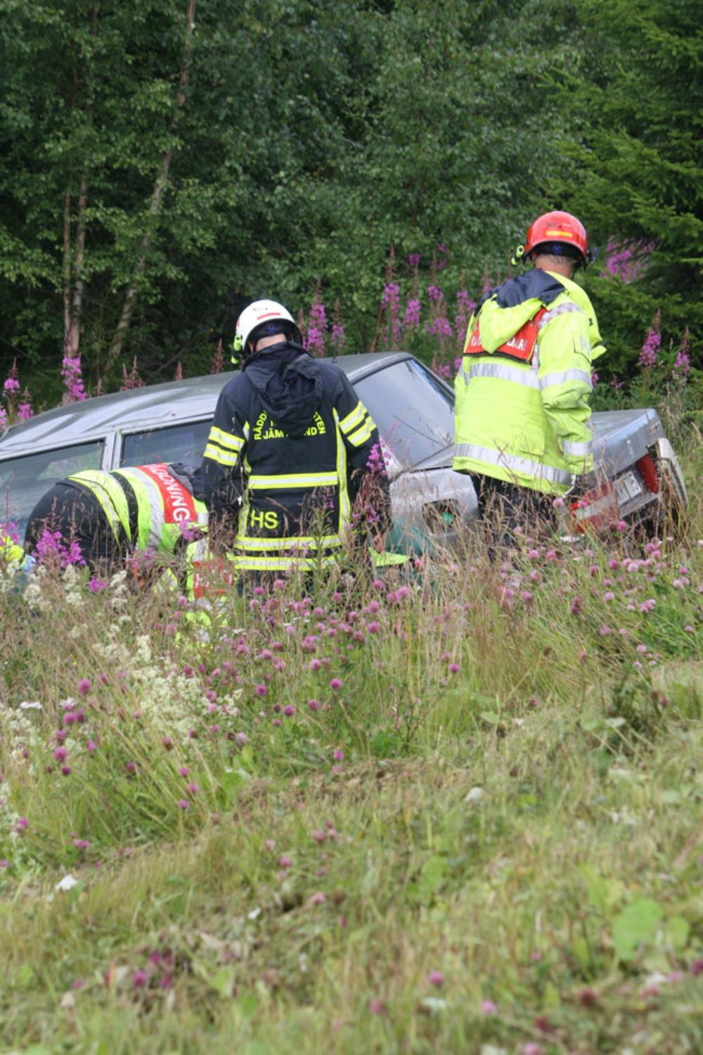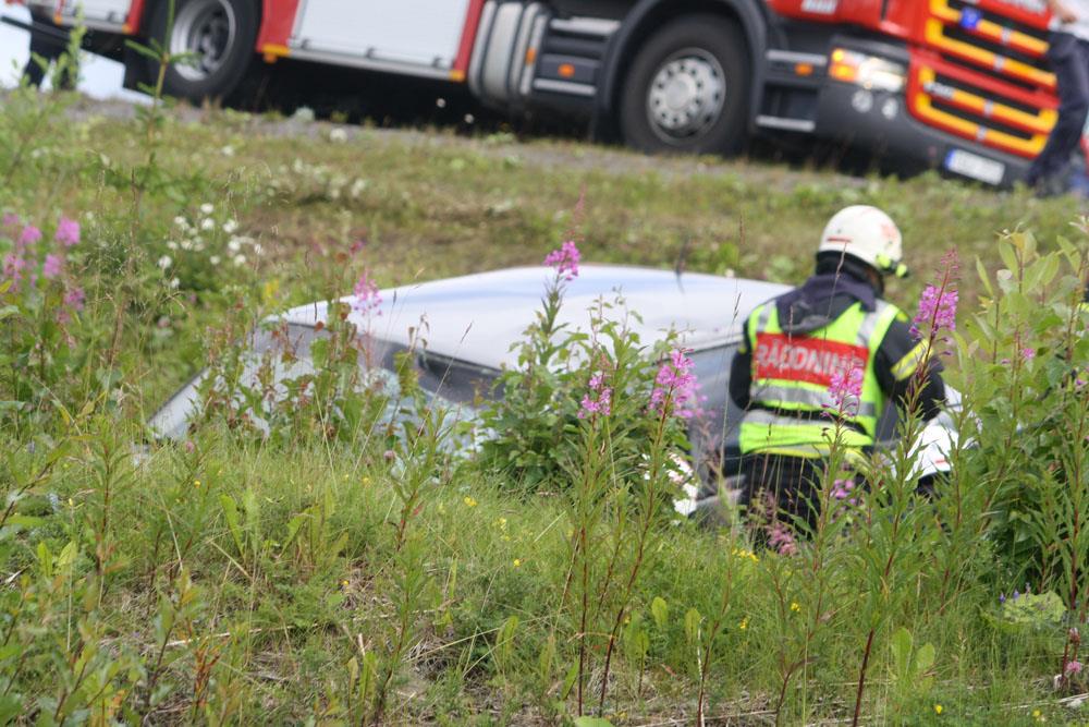 En person befann sig utanför bilen när räddningstjänst, polis och ambulans anlände till platsen.