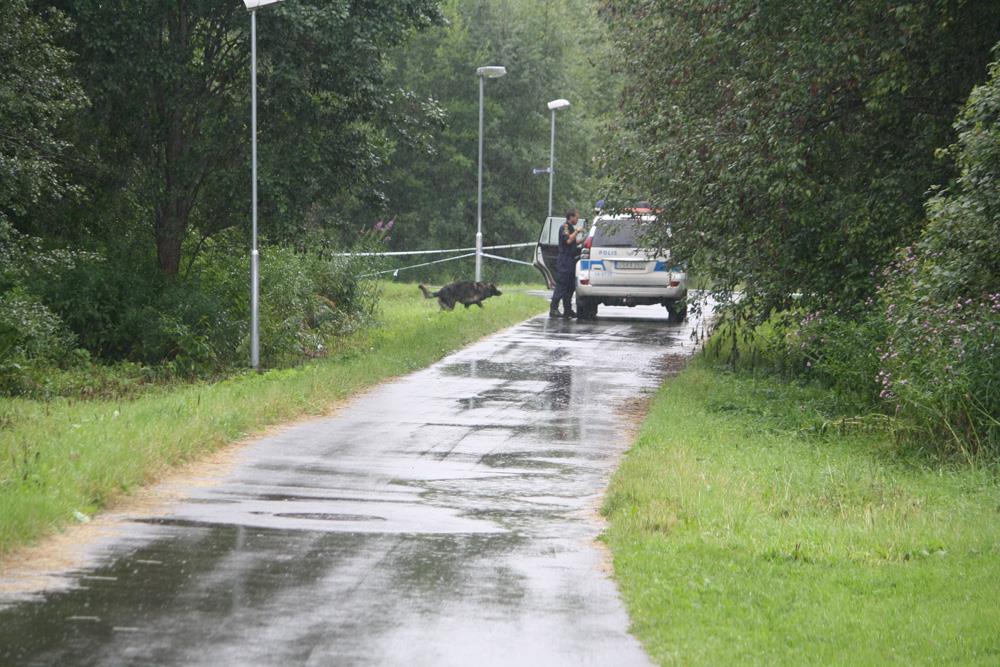 Polisen arbetade under söndagen med att spåra med hund i närområdet och säkra eventuella spår efter gärningsmannen.