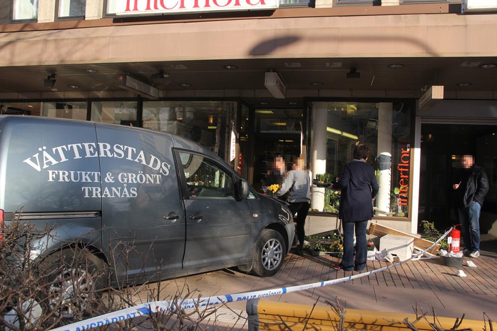 TRANÅS-JÖNKÖPINGEn bil har kört in i en blomsterbutik på Storgatan i Tranås.