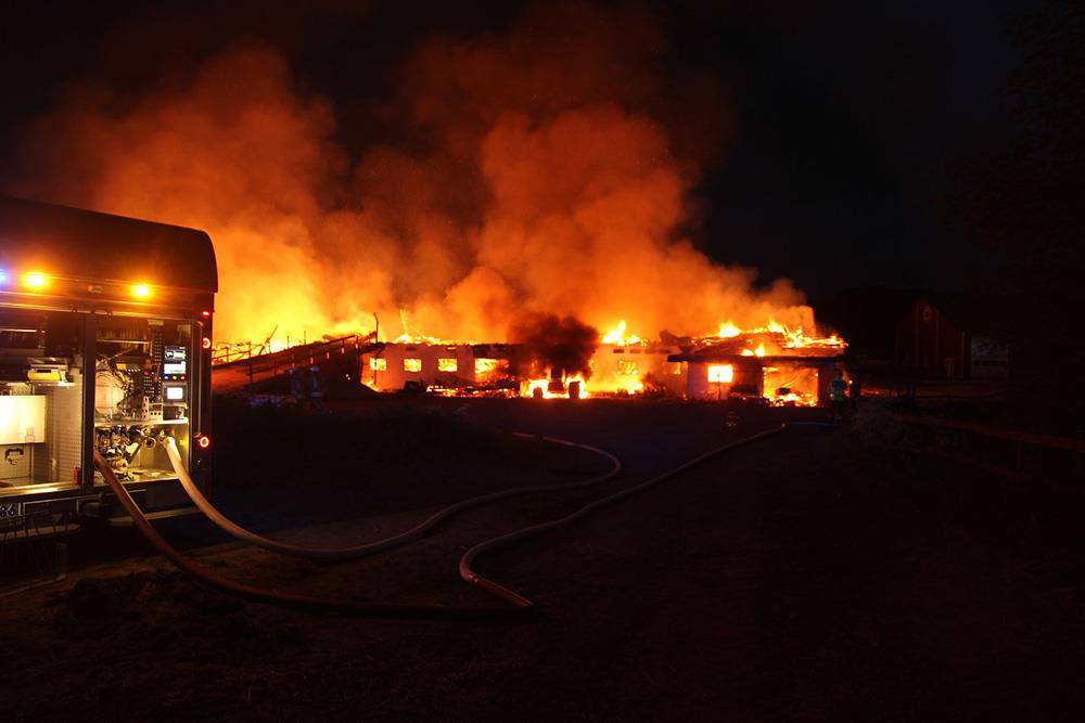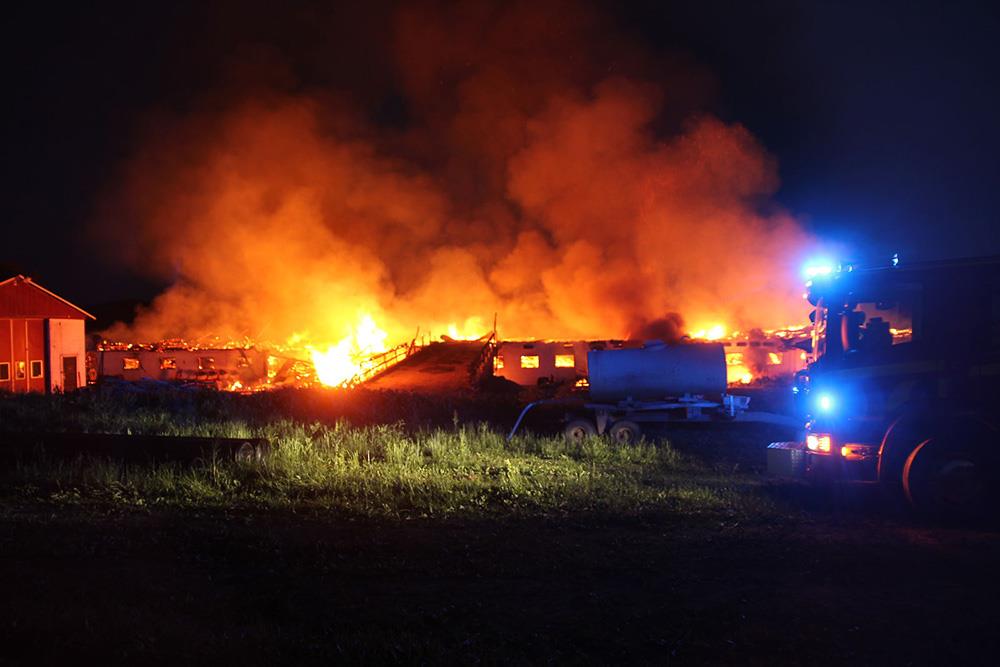 Branden bröt ut av okänd anledning på onsdagsnatten och ladugården är totalt utbränd.