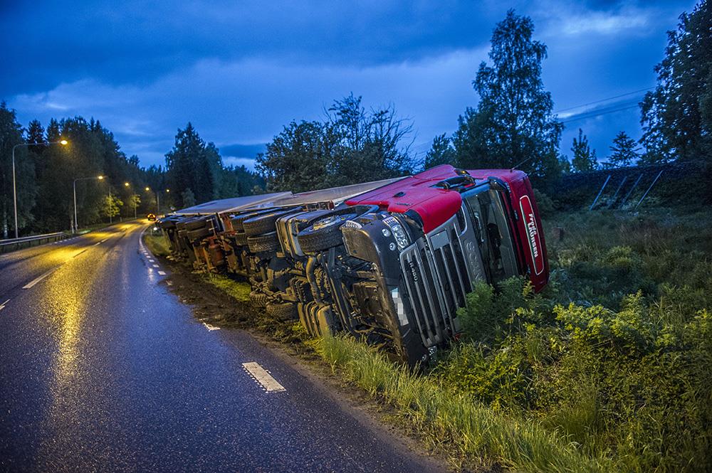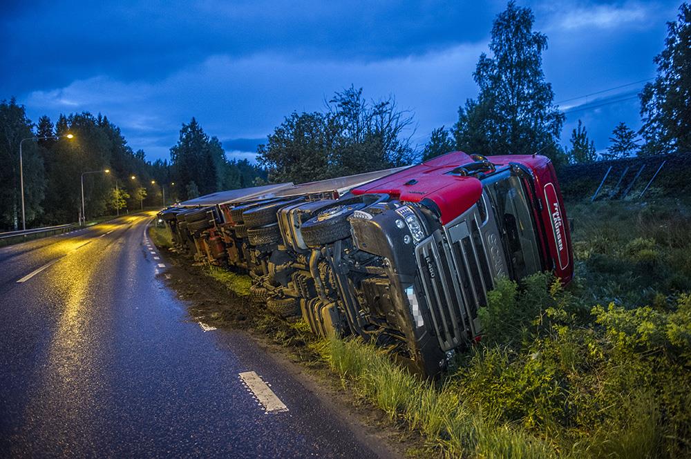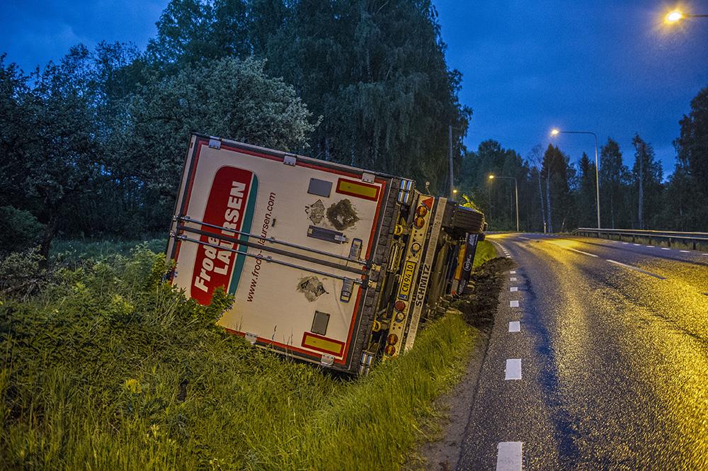 LUDVIKA-DALARNAEn lastbil har kört i diket på riksväg 50 vid Notgården.