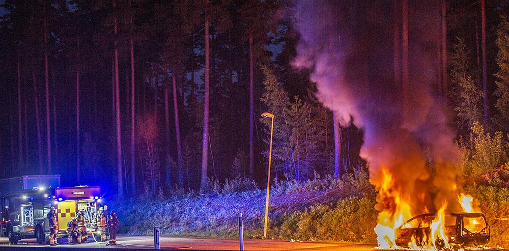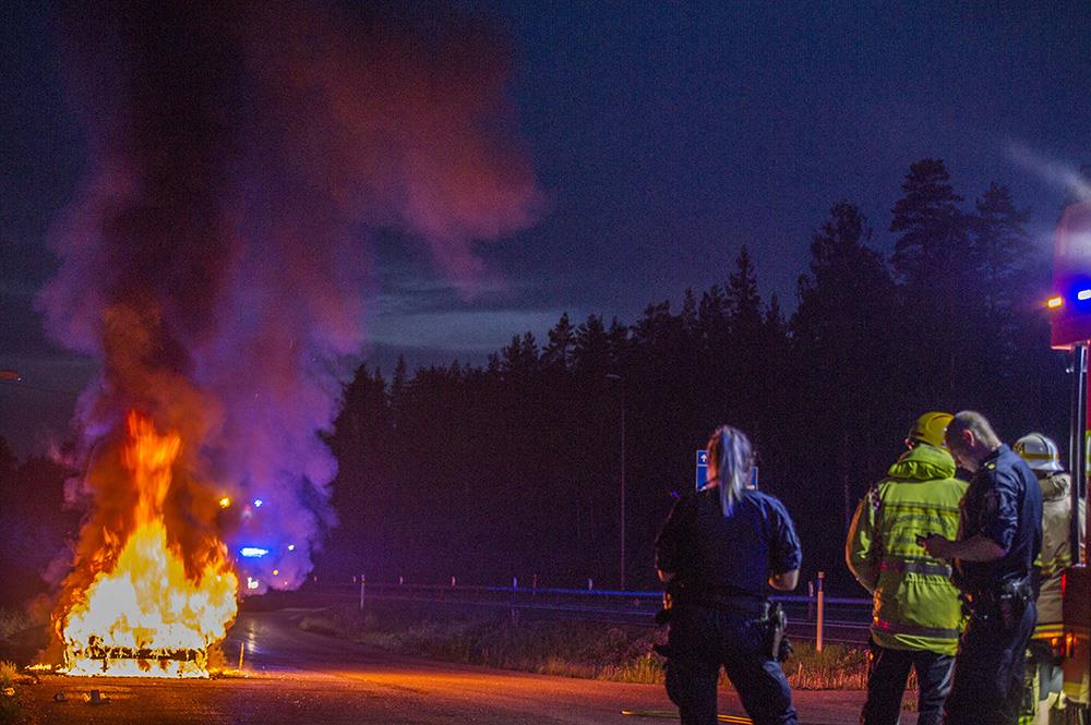 AVESTA-DALARNAEn personbil började av okänd anledning att brinna kraftigt på riksväg 70 vid Dalahästen i Avesta.