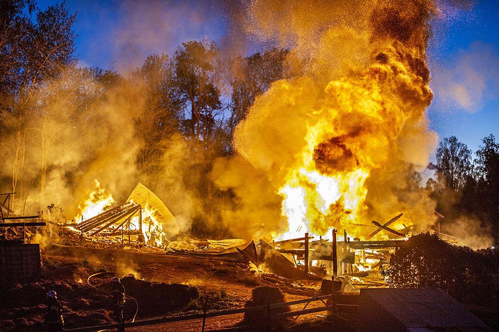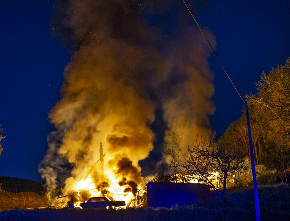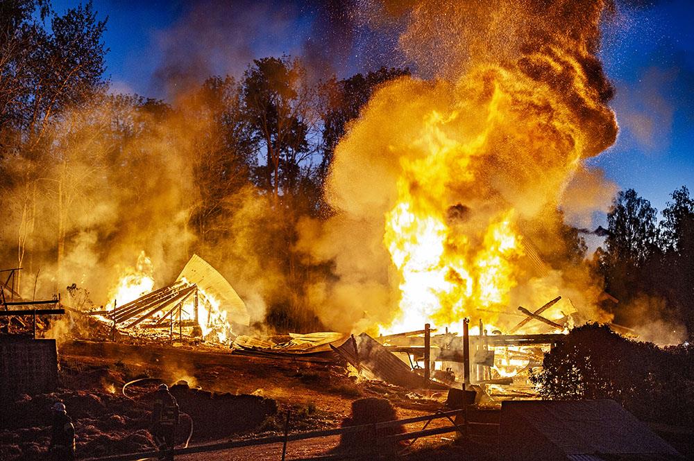 Inga djur fanns i ladugården. Däremot fanns misstankar om att acytelengas, svetsgas, förvarades i byggnaden.