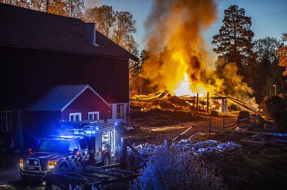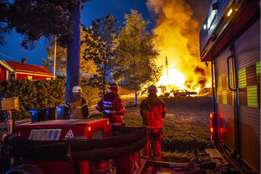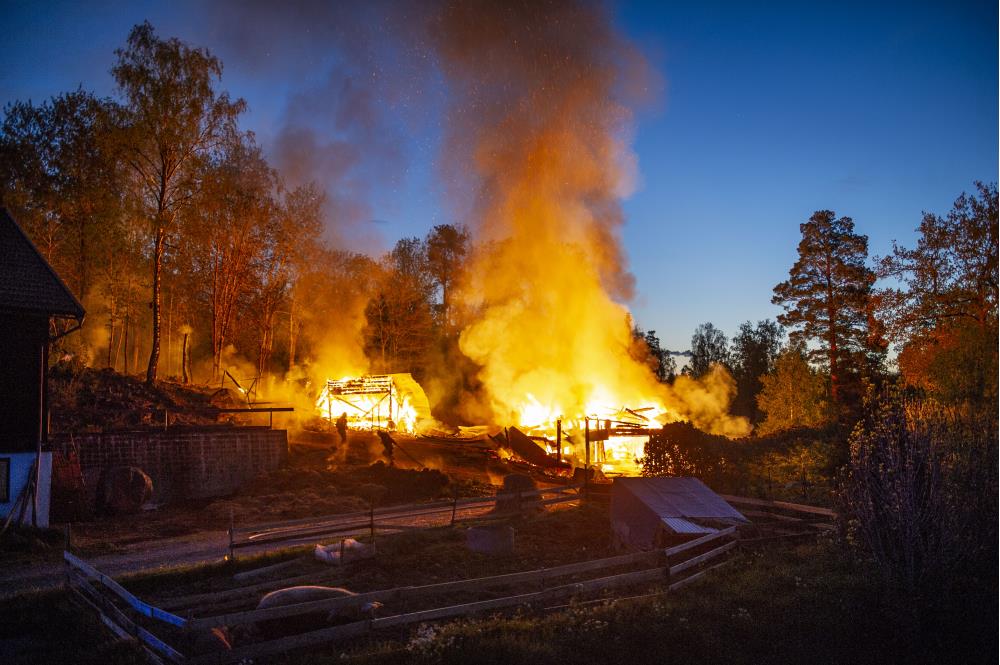 Rär räddningstjänsten kom fram till platsen i natt var byggnaden helt övertänd.