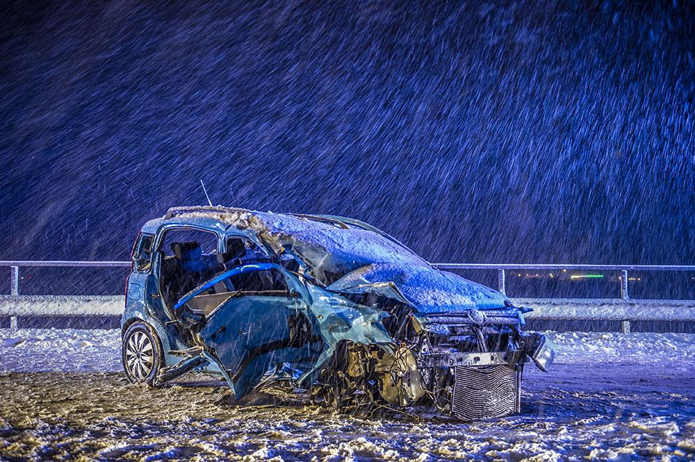 Tre personer satt i fordonen och en fastklämd person fick klippas ur en bil. En av bilarna ska ha hamnat i fel körfält innan kollisionen ägde rum.