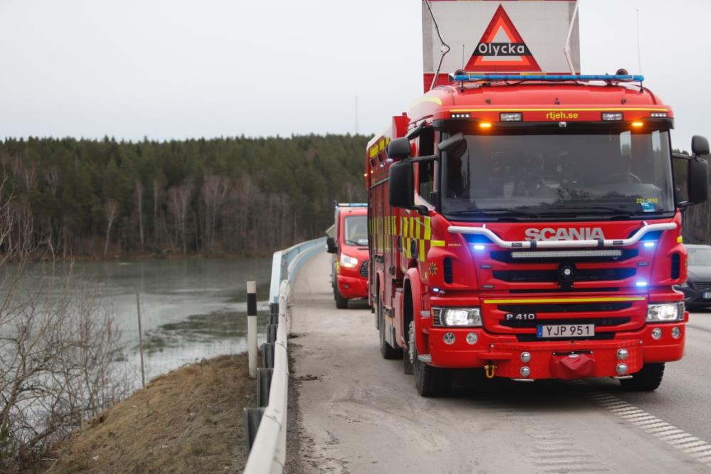 Tre personer är uppe ur vattnet och har förts till sjukhus i ambulanshelikopter.