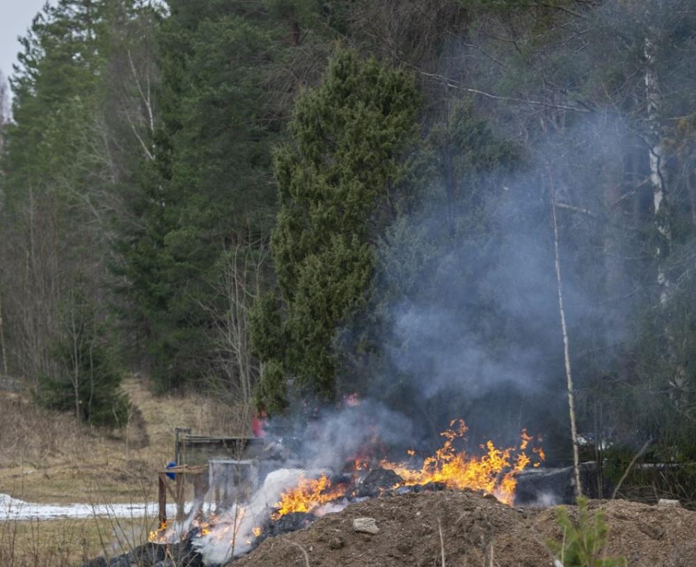 Även i jordig skogsmark är risken för bränder stor. Elden kan ligga och pyra nere i marken lång tid för att sedan flamma upp. Undvik också att elda nära myrstackar eller stubbar.