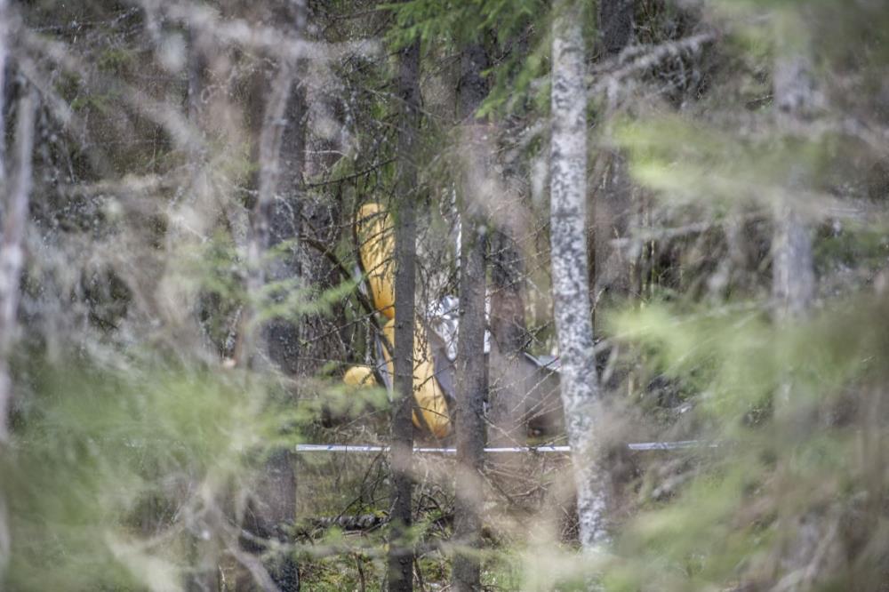 Räddningstjänsten gick först upp med en drönare och kunde på så sätt lokalisera helikoptern som gått ner mellan träden.
