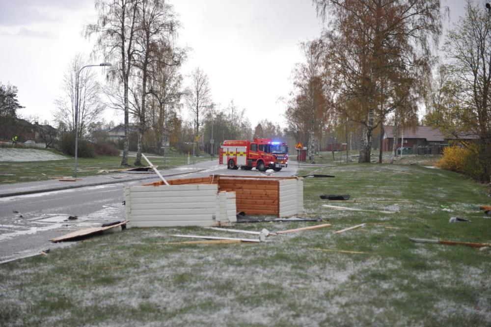 Friggeboden blev totalförstörd och blev sedan liggandes över Björnbärsvägen i Grums. Även delar spriddes ut över gräsmattorna. Räddningstjänsten i Grums ryckte ut till platsen 13.25.