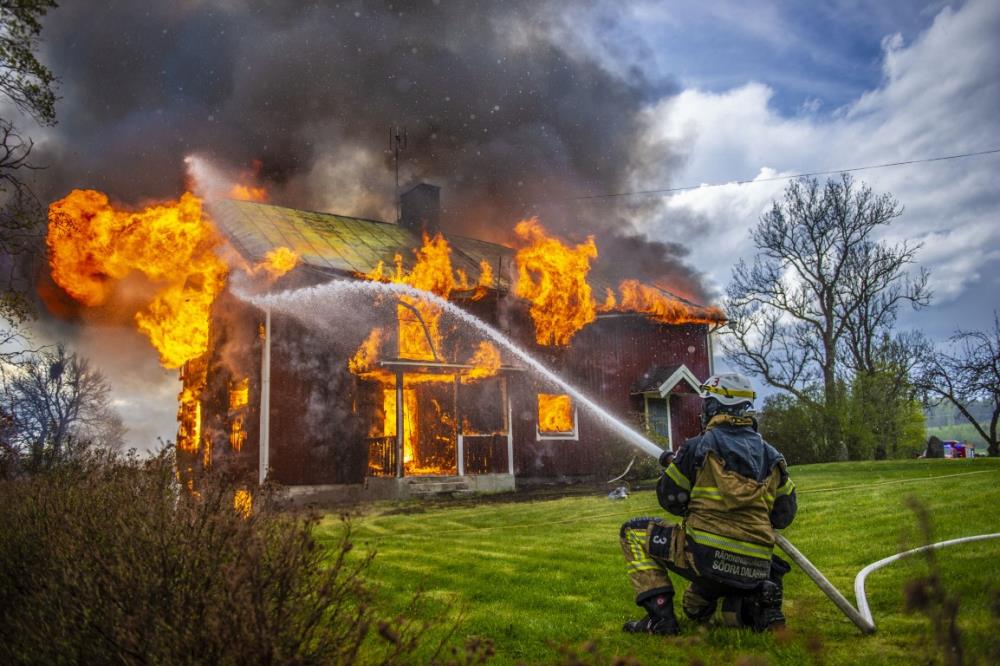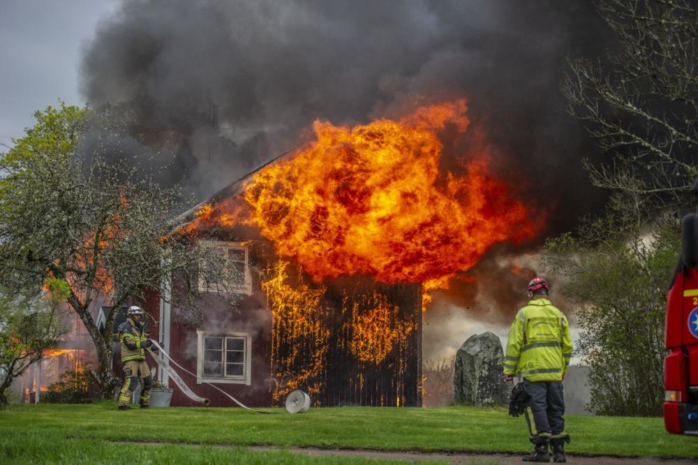 Larmet kom vid tretiden på torsdagseftermiddagen och villan blev snabbt övertänd.