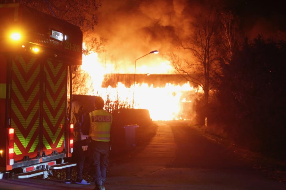 ENKÖPING-UPPSALAEn lagerlokal började brinna våldsamt i Grillby, bara några meter från från tågspåret vid midnatt.