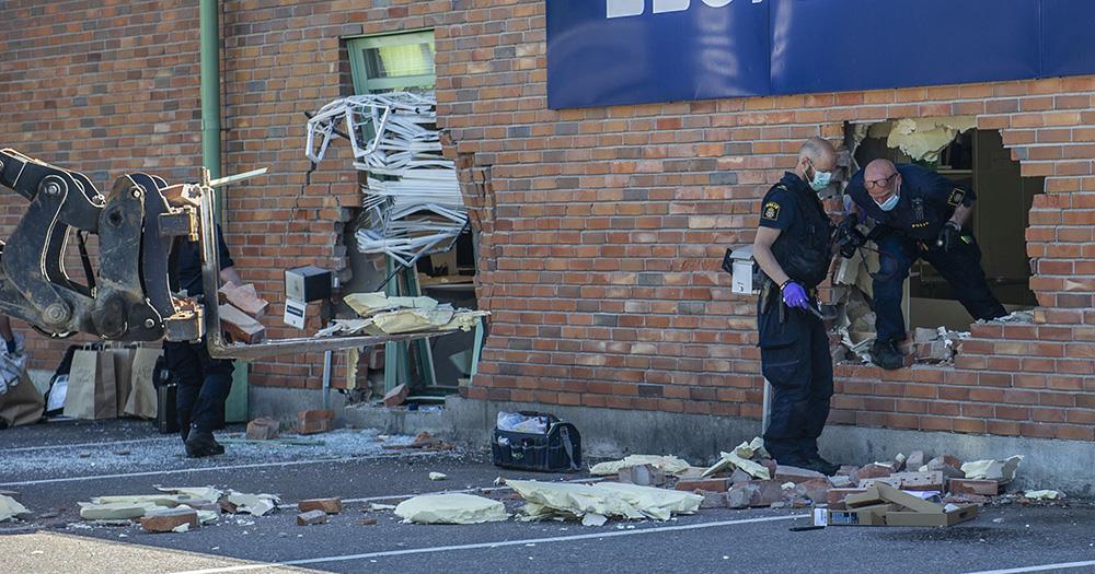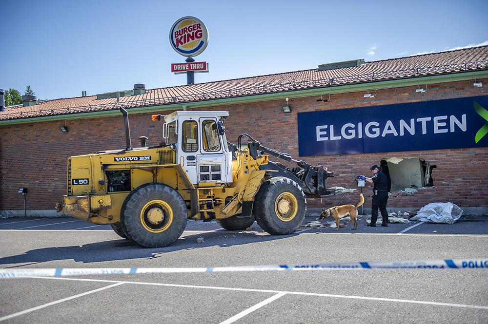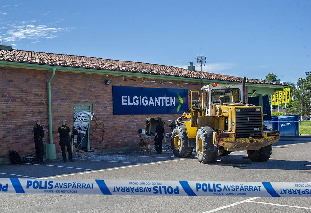 Det var strax innan klockan tre i natt som larmet utlöstes. Hjullastaren som använts ska ha stulits från närområdet.