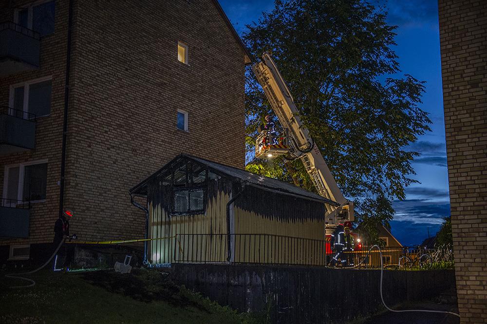 Räddningstjänsten kontrollerade byggnaden närmaste med vävaren och värmekamera så att branden inte spridit sig.